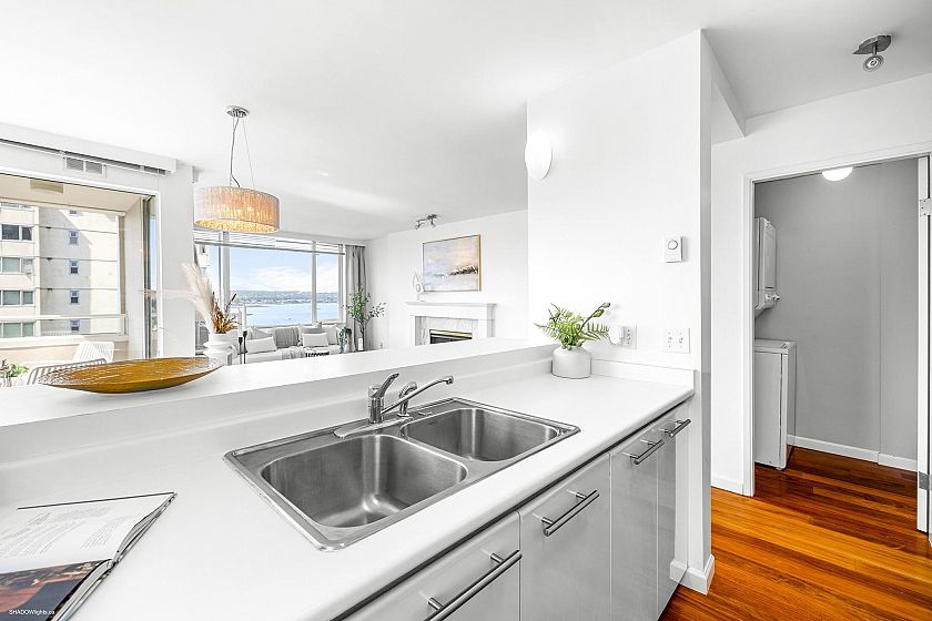 Prepare to be wowed by jaw-dropping, panoramic views from this stunning 2-bed, 2-bath corner suite in Harwood House. With prime SW exposure, this home captures incredible sunsets from every angle—whether you're on the 9x5 balcony, entertaining in the spacious living area, or cooking in the open-concept kitchen with S/S appliances. Floor-to-ceiling windows flood the space with natural light and frame the views, while hardwood floors, a cozy gas fireplace, and French doors to the primary bedroom add timeless charm. Smartly separated for privacy, the bedrooms include a primary with walk-in closet & ensuite. Just steps from Sunset Beach, the Seawall, and vibrant Davie Village, this is more than a home—it’s your front-row seat to stunning sunsets & waterfront living!