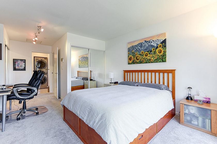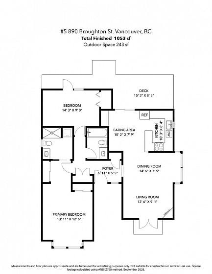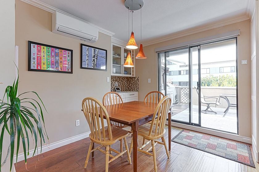 Penthouse that feels like a house! Bright & spacious 2 bed, 2 bath with windows on all sides and no shared walls—breezes and treed views in every room. Living room features hardwood floors, gas fireplace and French doors to a NW balcony. Large kitchen with white shaker cabinets, granite counters and new induction stove w/ double oven opens to a South East sundeck (15'3" x 8'8") with BBQ space, patio set and powered awning. Stairs to garden & planters. New carpet in bedrooms, heat pump (2021), roof (2017), in-floor radiant heat in both baths and entry. In-suite laundry, 1 parking, locker, 1 cat & 1 dog allowed. Prime West End—steps to Robson Street, schools, Nelson Dog Park, minutes to Stanley Park & English Bay, across from Barclay Heritage Square. Call your REALTOR. to view.