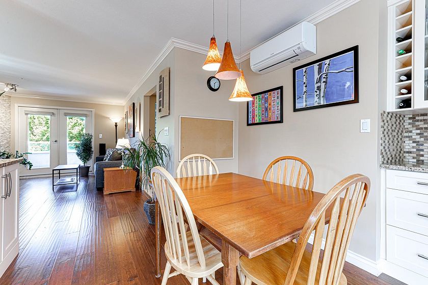 Penthouse that feels like a house! Bright & spacious 2 bed, 2 bath with windows on all sides and no shared walls—breezes & treed views in every room. Living room features hardwood floors, gas fireplace and French doors to a NW balcony. Large kitchen with white shaker cabinets, granite counters and new induction stove w/ double oven opens to a SE deck (15'3" x 8'8") w/ BBQ space, patio set and powered awning. Stairs to garden & planters. New carpet in bedrooms, heat pump, (Heat & AIR Conditioning 2021), roof (2017), in-floor radiant heat in both baths & entry. In-suite laundry, 1 parking, locker, 1 cat & 1 dog allowed. Prime West End—steps to Robson Street, schools, Nelson Dog Park, minutes to Stanley Park & English Bay, across from Barclay Heritage Square. Call your REALTOR. to view.