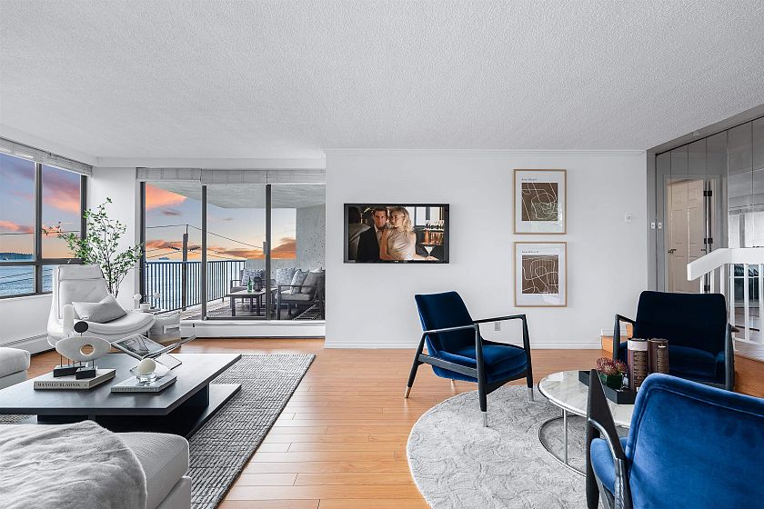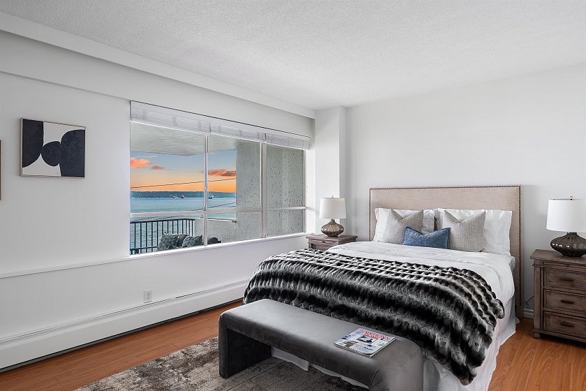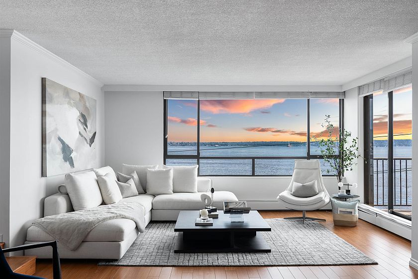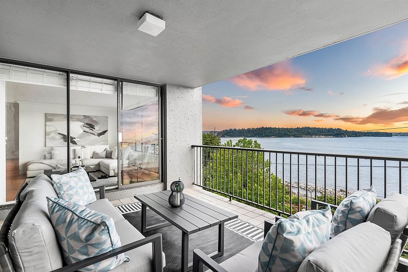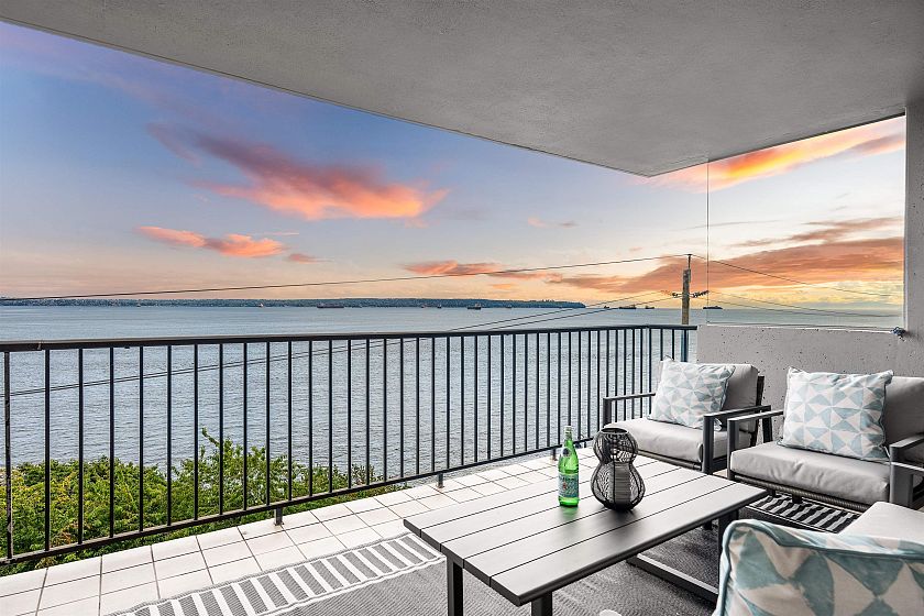 Discover this prime 2 bedroom, 2 bathroom waterfront residence at the THE SEAWIND in one of West Vancouver 's most exclusive buildings with unobstructed ocean views from the Lions Gate Bridge to Vancouver Island. The most sought after building has only 2 suites per floor and offer entertainment size principal rooms with two privately situated bedrooms and a wonderful covered oceanside terrace. Many features include secured paring for 2 vehicles and additional storage. Located steps to the Seawall, Ambleside village and minutes to the rec-center, senior center, library, shops, restaurants and all that West Van has to offer.