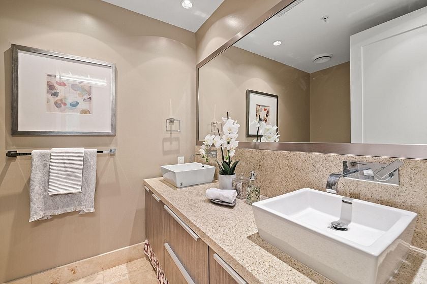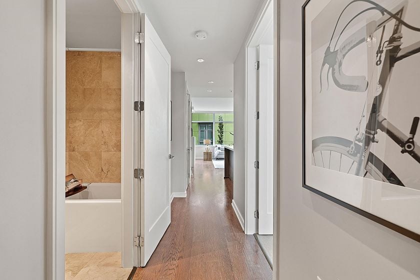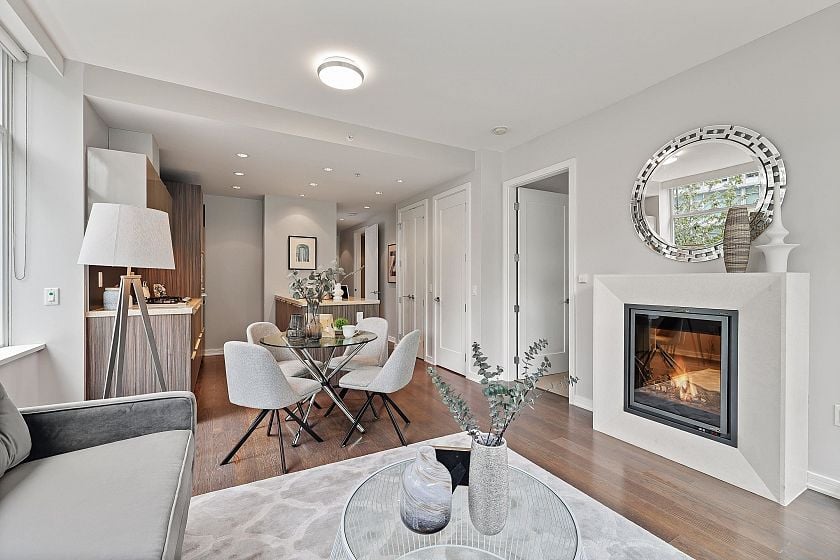 Immaculate open planned Southeast CORNER 2 Bedroom 2 Bathroom home at the BROOK in Olympic Village. Enjoy the abundance of natural light with plenty of windows, over height ceilings, radiant heating/cooling system, double vanity with standup shower in the primary ensuite & a balcony to enjoy your open city & mountain views. A kitchen that would make any chef jealous with top of the line Sub-zero & Miele appliances with gas stove, Eggersman cabinetry & bar seating. World class amenities in the bldg as well as in the Gold Medal Club with indoor pool & gym. Walk, bike, Aqua bus, transit easily anywhere in the city but you will not need to go far as the seawall, shops. restaurants & activities are steps away.