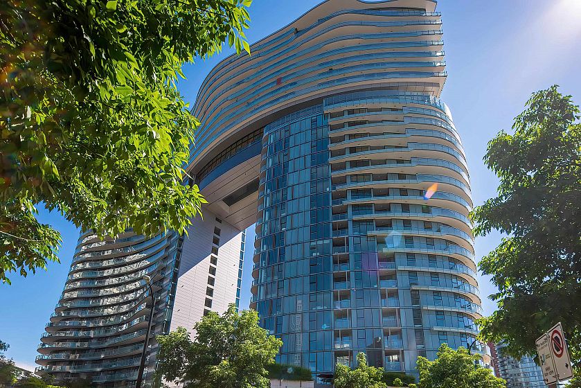 Architecturally refined 2-bed&flex/den, 2-bath corner home The Arc by Concord Pacific, offers sweeping views of False Creek and skyline. Thoughtfully laid out floor-to-ceiling windows, and well-separated bedrooms for privacy, the residence combines smart design with modern elegance. Marble tiles throughout bathrooms. Premium kitchen is equipped with Miele appliances, while the primary suite features a spa-like ensuite and a spacious closet. Access to the exclusive Sky Club with its world-renowned 20th-floor glass-bottom pool, fitness centre, and social lounge. Steps to the Seawall, fine dining, and the best of Yaletown, downtown living, this home offers a sophisticated urban lifestyle in one of Vancouver's most iconic building.