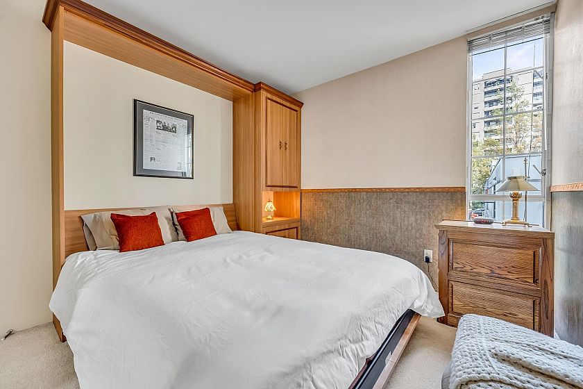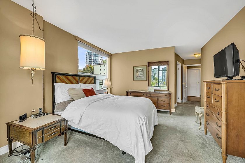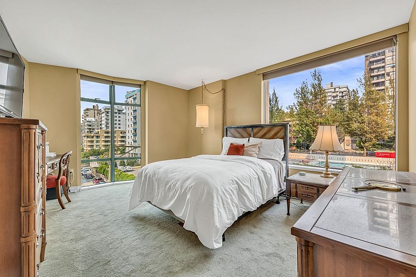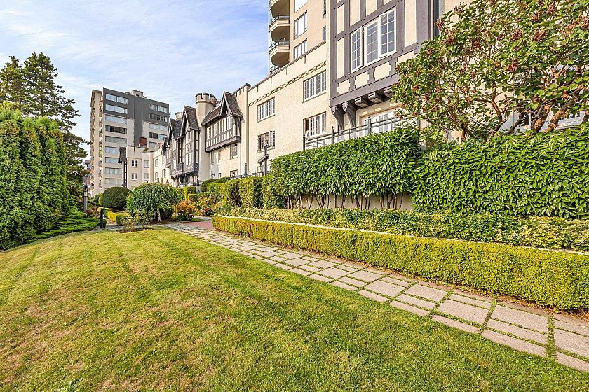 Rare opportunity to own a spacious residence in the iconic Tudor Manor, with stunning views of Sunset Beach, English Bay, False Creek inlet, and the Tudor turrets. Enjoy SW and NW exposures with opening windows on three sides. This highly sought-after ‘03 floor plan offers 1,347 sq.ft. of elegant living, featuring two generous bedrooms, an open den (ideal for a grand piano), and two full baths—including an oversized ensuite with a soaker tub and separate shower off the king-sized primary suite. The kitchen boasts a breakfast nook with sunny views. Expansive walls for your art collection. Three premium parking stalls (two side-by-side) and a storage locker. Residents enjoy 24-hour concierge, guest suite, garden, fitness centre, and an impressive formal lobby.