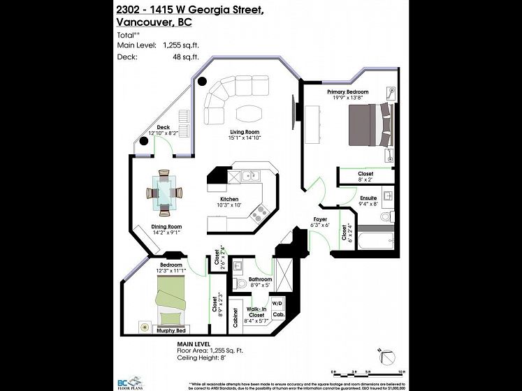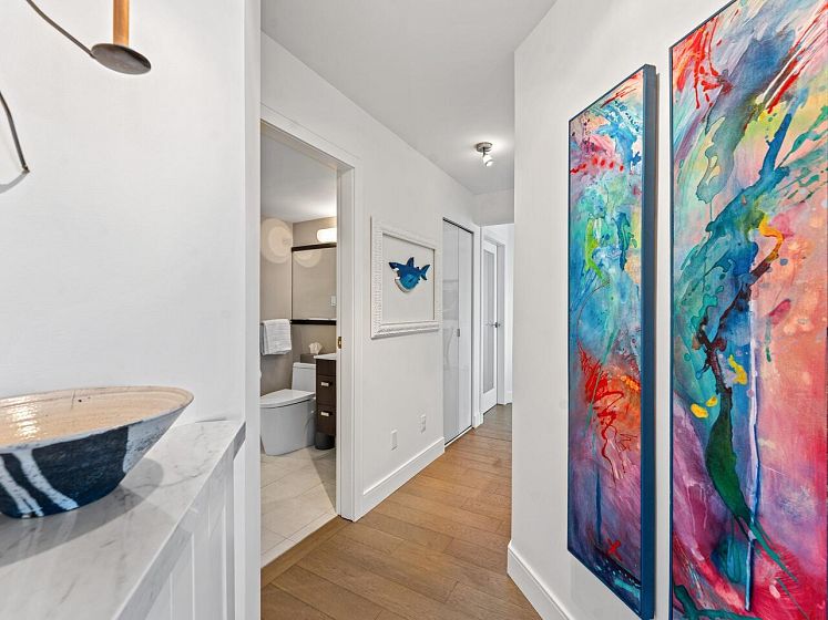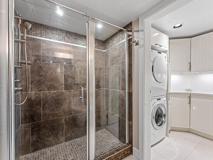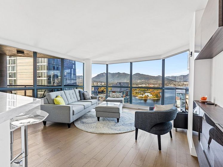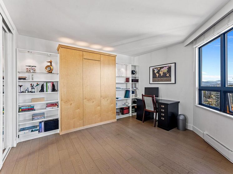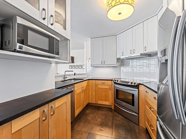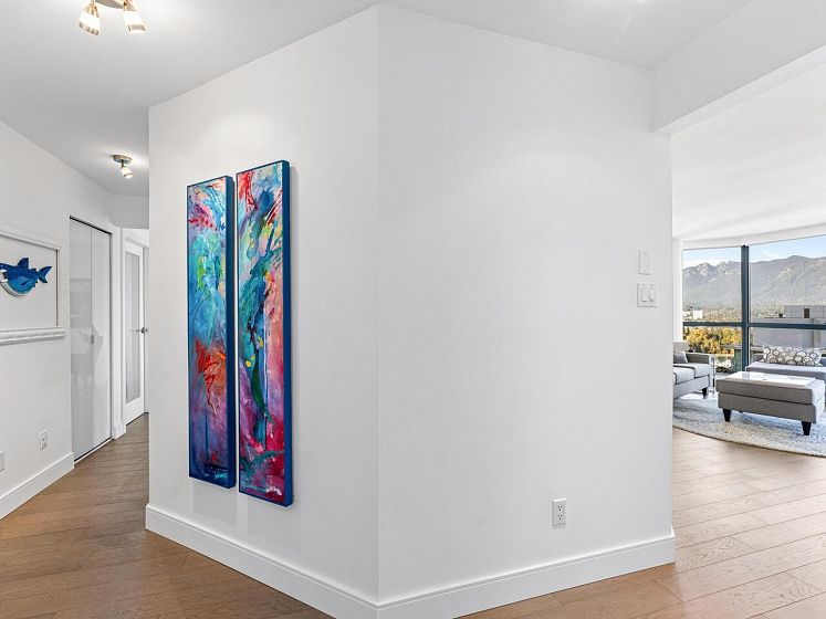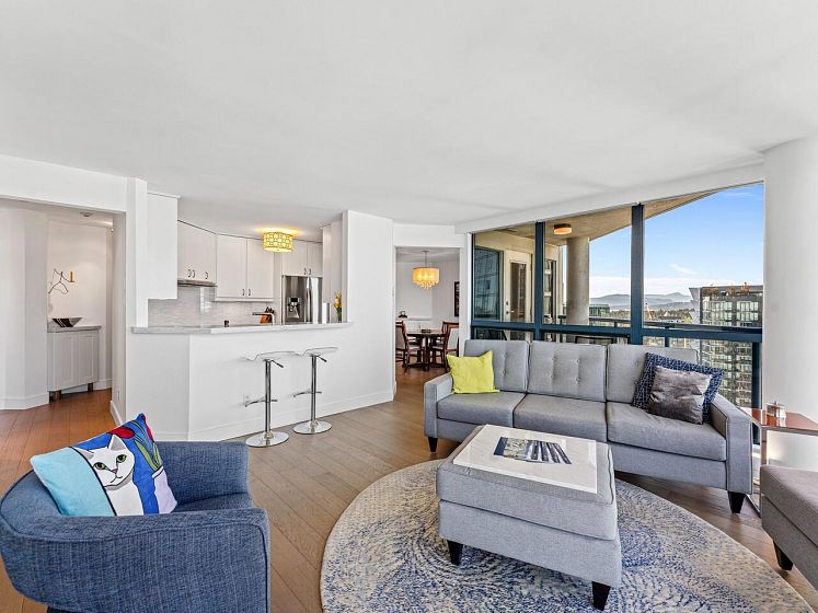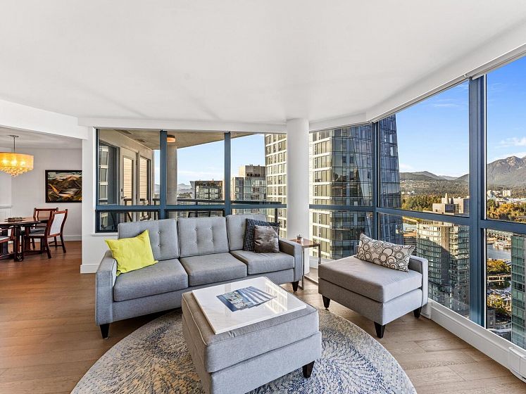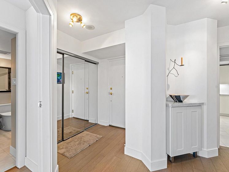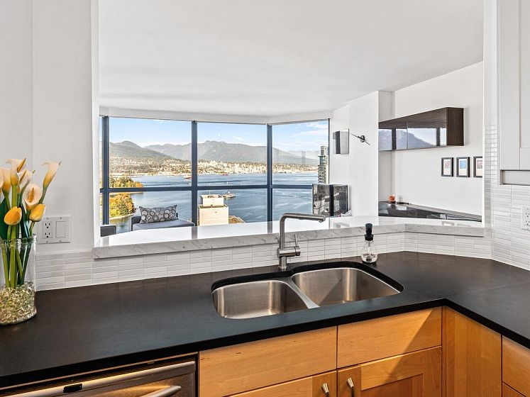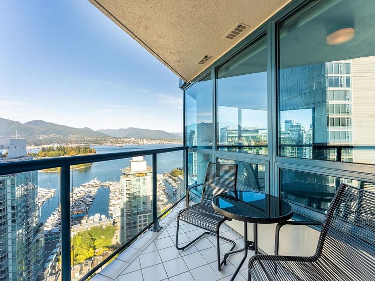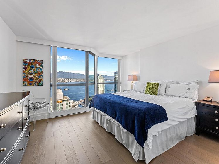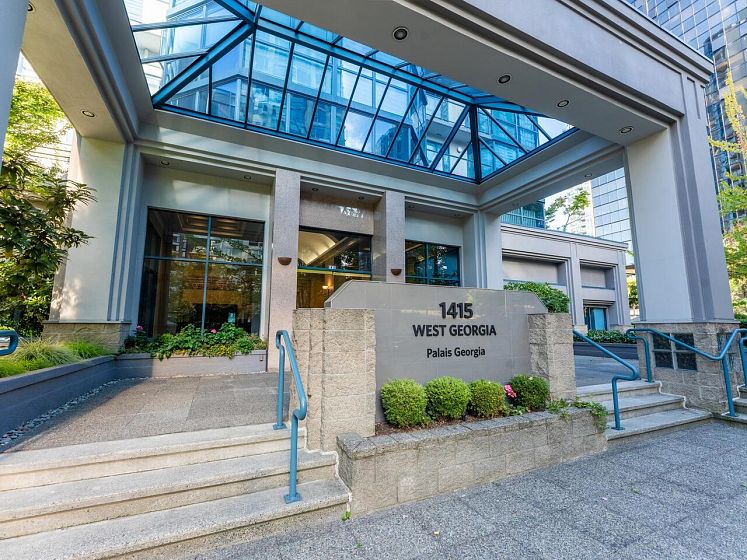Beautifully renovated spacious 2-BR, 2-BA, rarely available 02 unit at Palais Georgia. Spectacular views to Coal Harbour, Stanley Park, Lions Gate Bridge & Mountains. Features large primary bedroom & second bedroom/office with Murphy bed. Custom laundry room & storage. Kitchen with breakfast bar, stainless steel appliances, black granite & Carrera marble counters. View balcony off dining/living area. Luxury building amenities include pool, hot tub, fitness centre & large amenity room. Numerous recent building upgrades. Steps to seawall, community centre, elementary school/daycare & transit. Two blocks to Robson Street shopping and restaurants. Easy walk to Stanley Park and financial district. Concierge/caretaker & security. Regretfully, no cats/dogs.