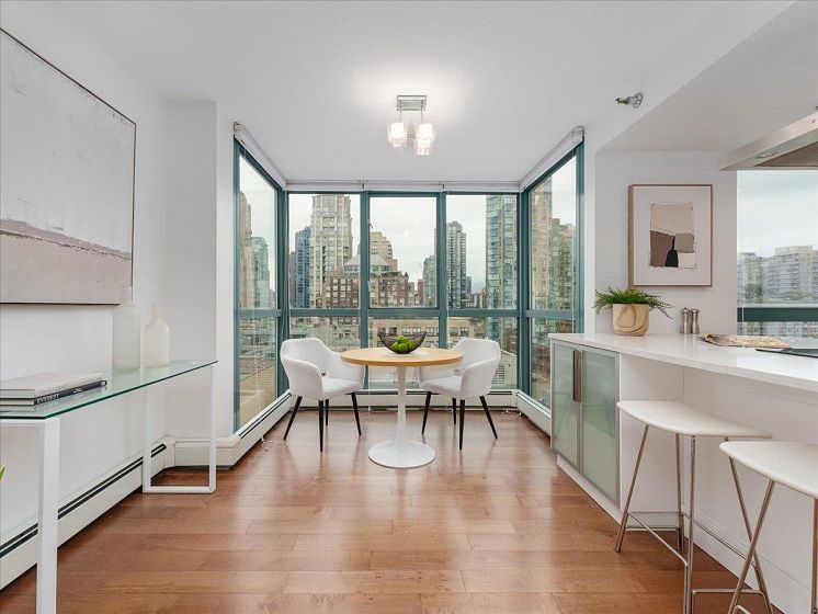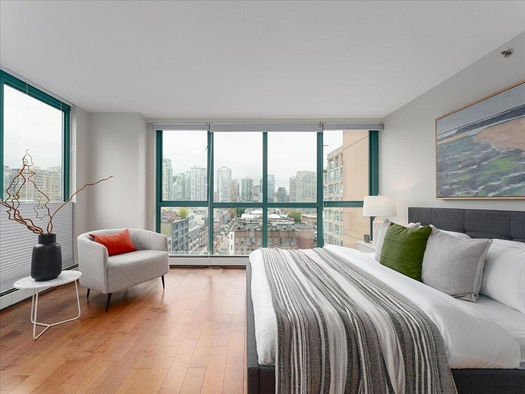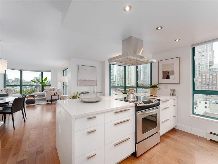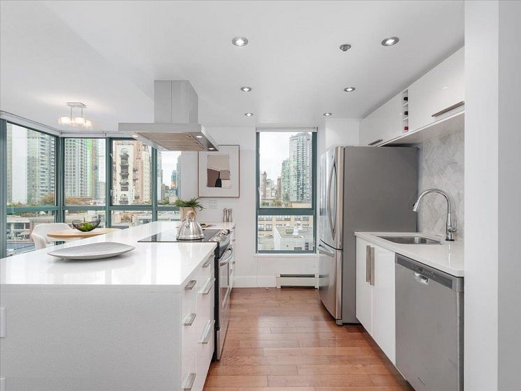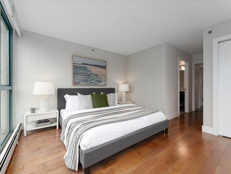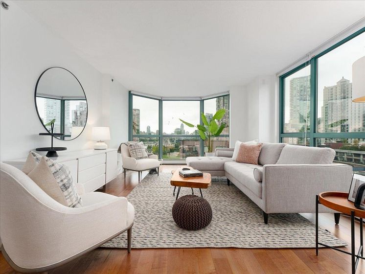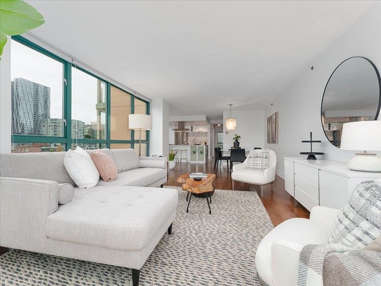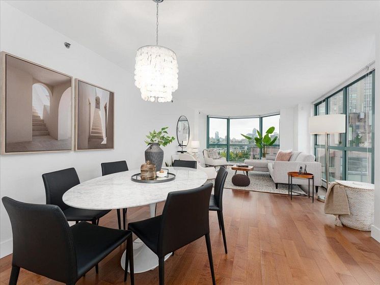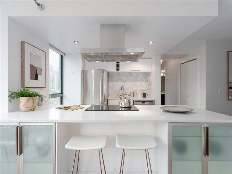 Experience breathtaking panoramic views of False Creek, David Lam Park, and the city skyline from this spacious 1,200+ SF 2 bed + 2 bath residence. Perfect for entertaining, the open-concept kitchen features stainless steel appliances, a custom marble backsplash, and quartz waterfall countertops. Elegant engineered hardwood floors flows throughout, while spa-inspired bathrooms showcase marble tiling and vanities. Enjoy resort-style amenities including a pool, hot tub, sauna, fitness centre, and bike storage. Located in vibrant Yaletown, just one block from the waterfront and seawall, with the Canada Line, dining, boutique shops, and six parks right at your doorstep.