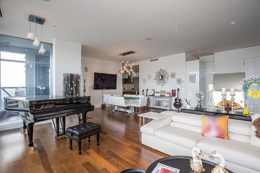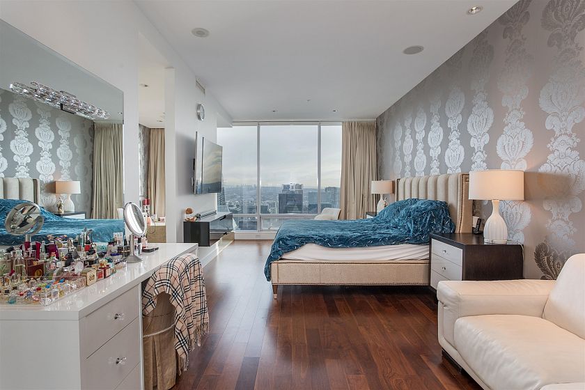 LIVE LIKE ROYALTY in this opulent 2-bedroom, 3-bathroom residence nestled within the prestigious Shangri-La. Meticulously upgraded with approximately $300k in enhancements, this suite boasts hardwood floors, state-of-the-art appliances, a bespoke temperature-controlled wine room, and automated shades & lighting. Revel in unobstructed vistas of the North Shore Mountains and Coal Harbor that will elevate your entertaining prowess in the expansive living and dining areas equipped with a built-in sound system. Retreat to the master quarters where a window-side soaker tub and spacious walk-in shower beckon you to unwind. This breathtaking property provides privileged access to the Shangri-La's 5-star hotel amenities, including a fitness center, pool, and a 24/7 concierge.