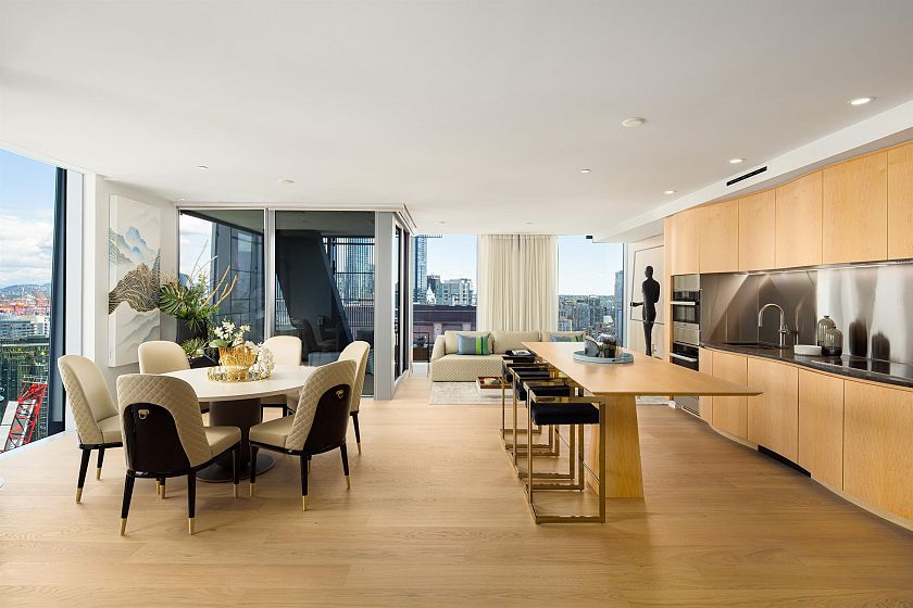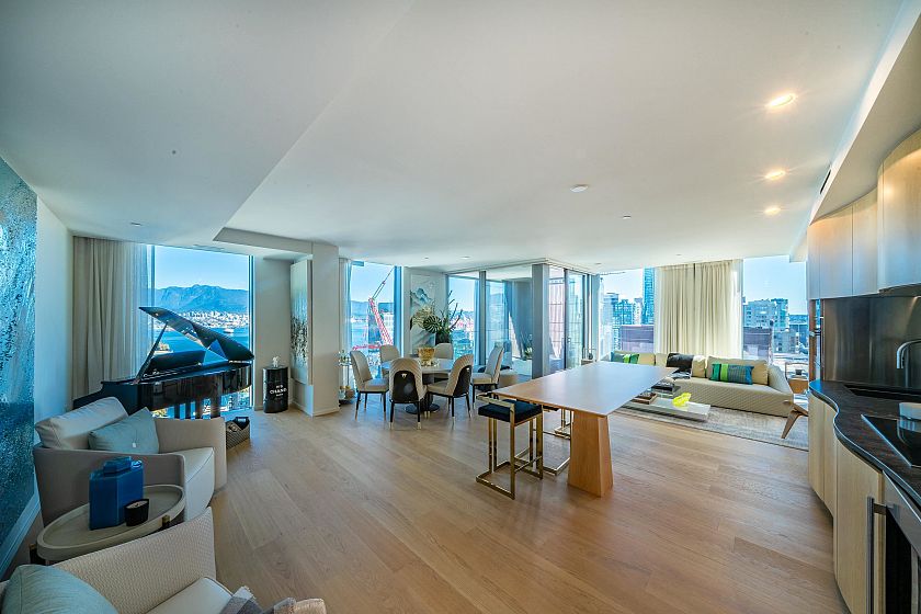 BC assessment $4.22million. Welcome to Alberni by Kengo Kuma, an architectural icon in downtown Vancouver. This brand-new 2-bdrms + 2 bthrms residence offers 1,650 sqft of total living space. Enjoy breathtaking, unobstructed views of Coal Harbour, Stanley Park, and the city skyline through full-height windows and 10-foot ceilings. Thoughtfully designed with curved wood walls, integrated Miele appliances, travertine spa bathrooms, and central A/C, this home blends natural elegance with modern luxury. Includes 2 side-by-side parking stalls, a storage locker, and wine storage. Residents enjoy world-class amenities: 24-hour concierge, Japanese moss garden, wine tasting room, fitness centre, 25m indoor pool, and private art gallery.