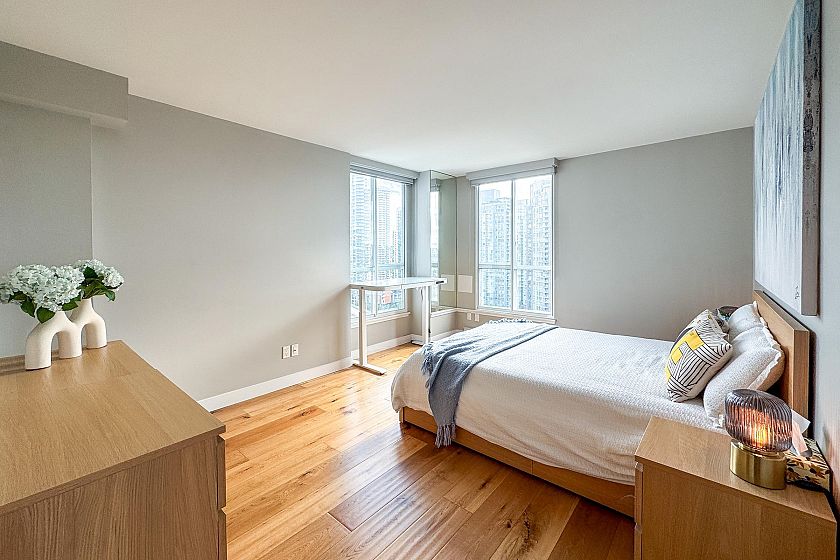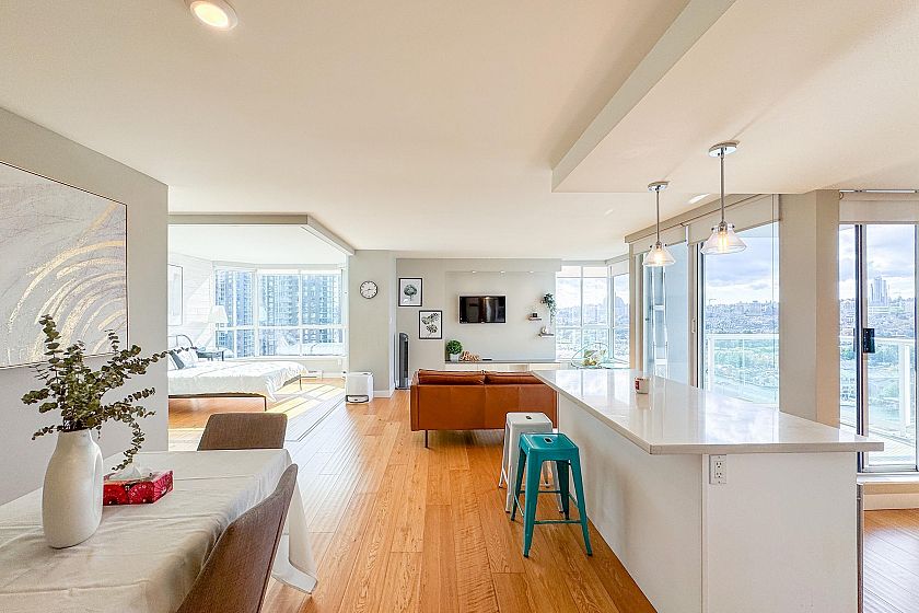 A WATERFRONT LUXURY living in the heart of Yaletown! Breathtaking Panoramic 270 views of False Creek, Granville Island and Sunset from every room! This RENOVATED,BRIGHT 2-bed, 2-bath corner home offers open-concept space with solid hardwood floors, granite tiling, ample cabinetry, a gourmet kitchen equipped with high end appliances. Amenities include: gym, hot tub & sauna, guest suites, work spaces and garden. Steps to Yaletown’s best restaurants, cafes, shopping, and seawall strolls. Two parking stalls and a generous storage locker. Open House Sat, Oct 11 1-3pm.