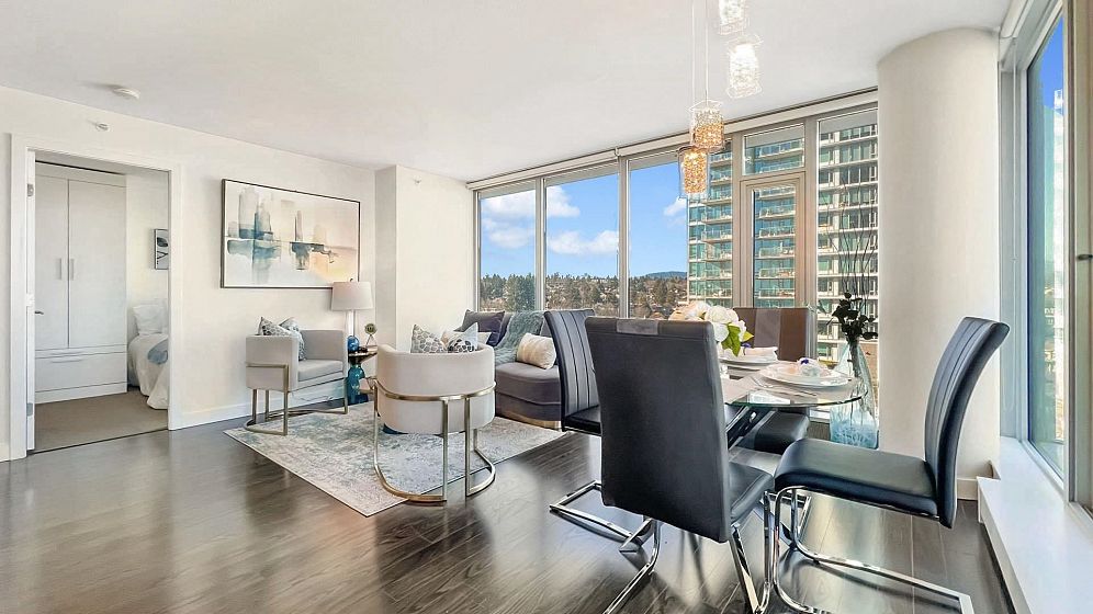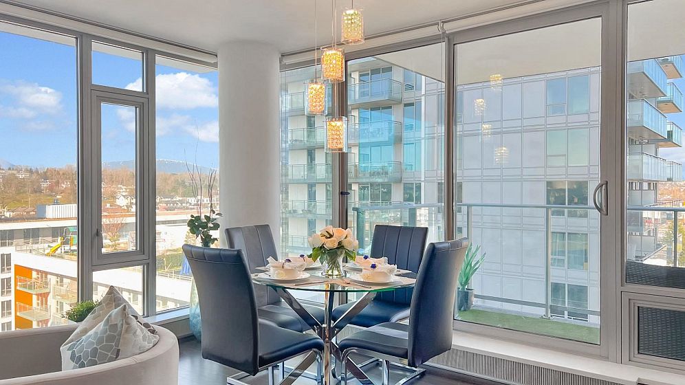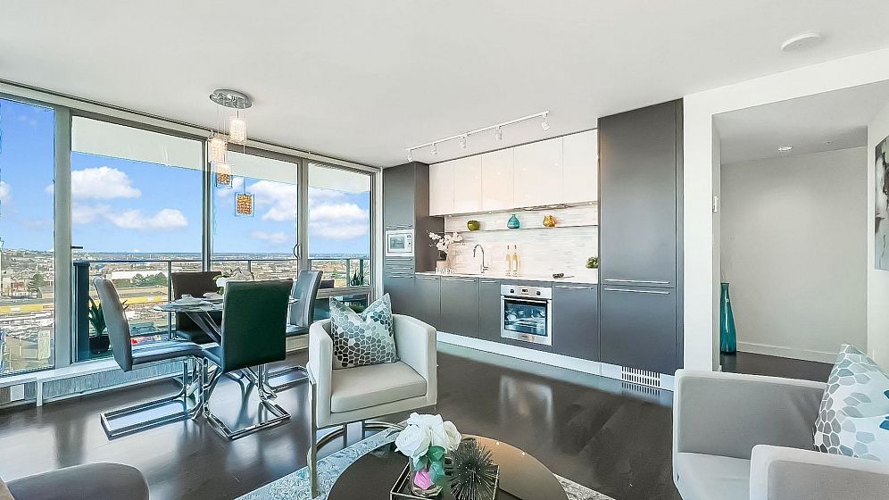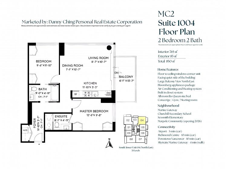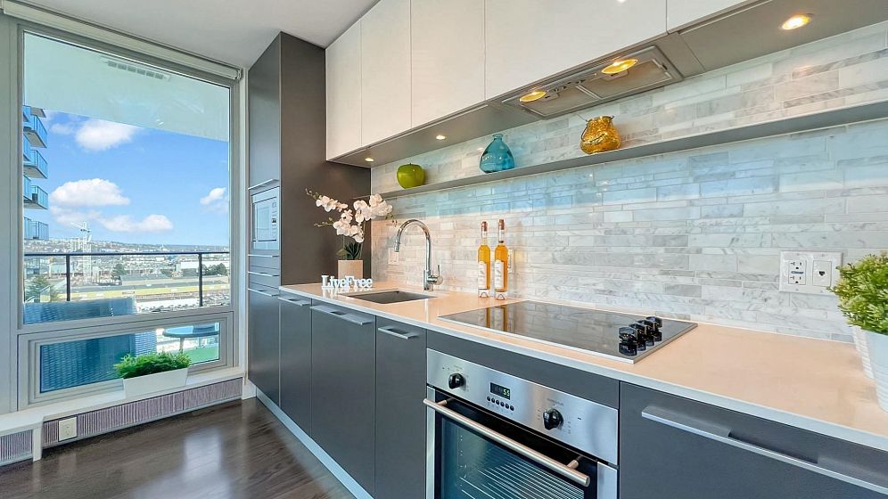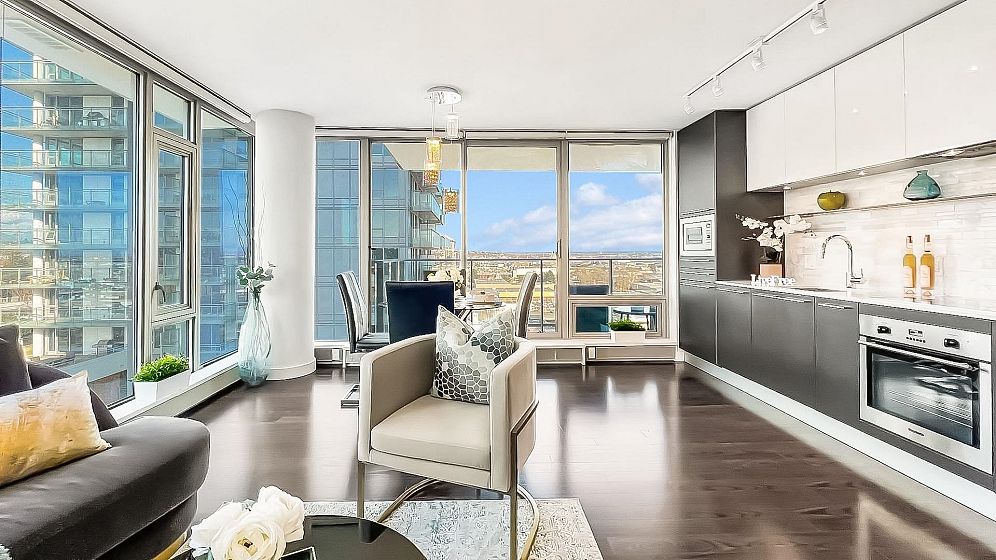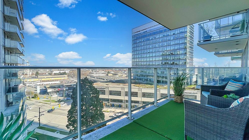 MC2 North by Intracorp. This bright NE corner 2 BED 2 BATH contemporary home offers floor to ceiling full width windows in your open concept living, dining & kitchen. Stay comfortable w/Jaga Briza cooling & heating or relax on your large covered balcony. Gourmet kitchen w/Bloomberg appliances, Caesarstone counters & marble backsplash. Armony Cucine cabs thru-out inc. custom closet systems in your non adjacent bedrooms both w/spa-inspired ensuites! Amenities inc. concierge, gym, meeting room. Minutes to Richmond & STEPS to Canada Line Skytrain, T & T, Winners, Cineplex, Starbucks, Shoppers, dining & more! 1 parking. 1 locker. PUBLIC OPEN Oct 25 2-4pm