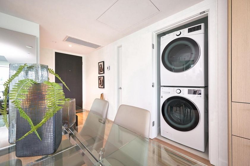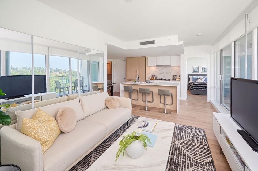 Step into this bright and spacious 2-bedroom home at APEX, offering breathtaking views and refined finishes throughout. The exquisite gourmet kitchen features integrated Liebherr and AEG appliances, luxurious quartz countertops, a sleek porcelain backsplash, and a striking waterfall island—perfect for entertaining. Enjoy access to 14,000 sq ft of 5-star resort-style amenities, including a stunning lap pool, steam and dry saunas, a stylish lounge, expansive party room, guest suite, and a premium.