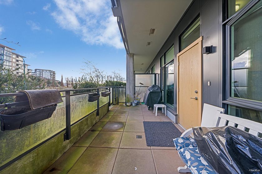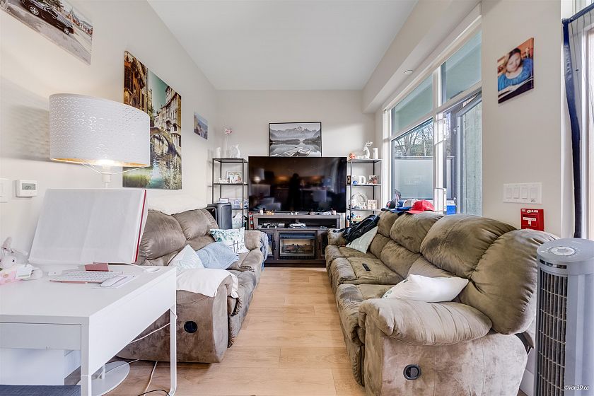 BEST PRICED TOWNHOUSE! This 980 sf, 2 bed 2 bath Townhome Style Condo has been well-kept with an open floor plan and functional layout. Top of the line appliances, quartz countertops, radiant heating throughout & additionaal sound proofing in walls and windows!! Above has 2 bedrooms, a walk-in closet, 4pc bathroom, and a second patio! Private 161sf fenced patio with separate entrance & gas hook up. Great amenities with 3 recreational rooms, gym, indoor/outdoor kids play areas and more. Private facing townhouse just steps from the main road in River District. Steps from Save-on Foods, Bosley’s Pets, Banks, Restaurants, and more! Comes with 1 Parking & 1 Storage Locker! OPEN HOUSE SAT OCT 11 (12PM - 2PM)