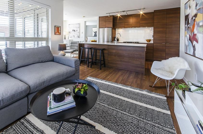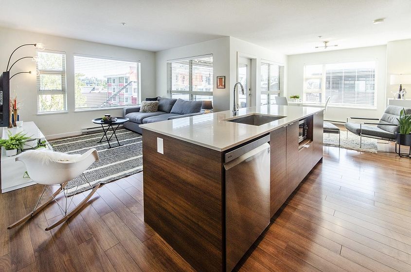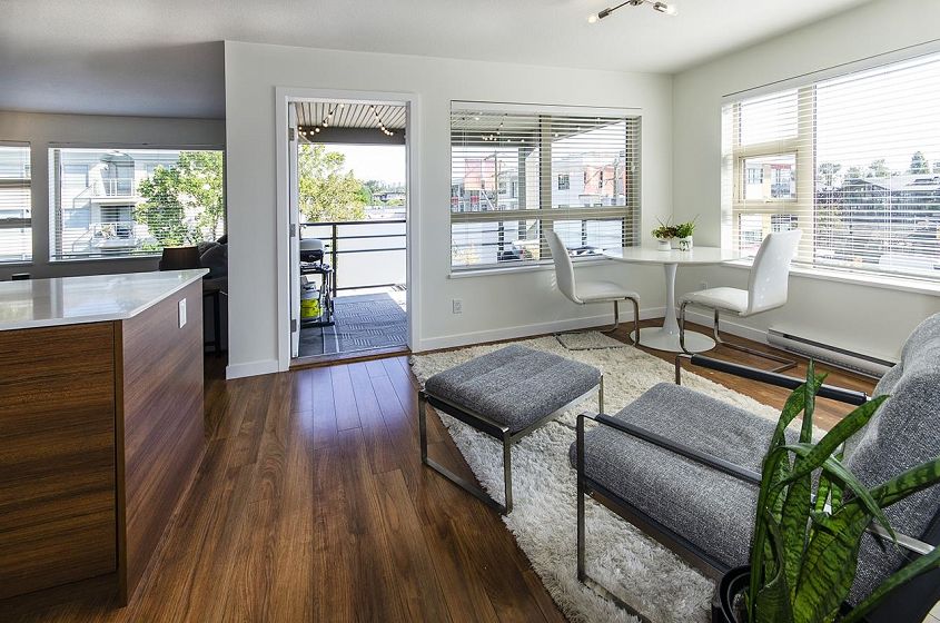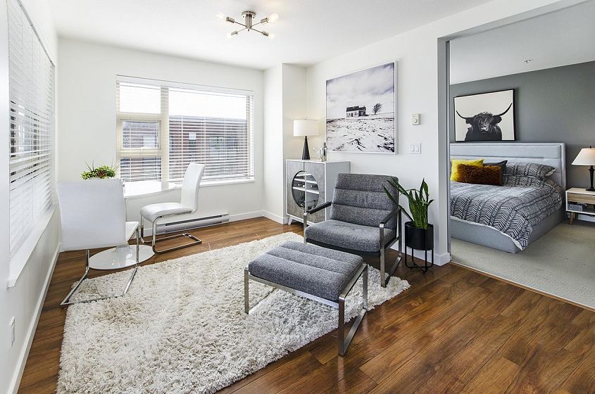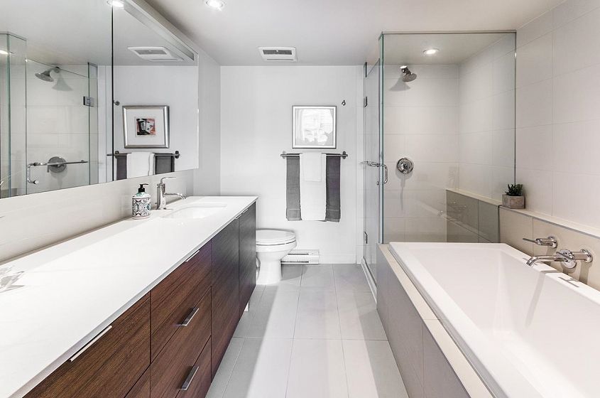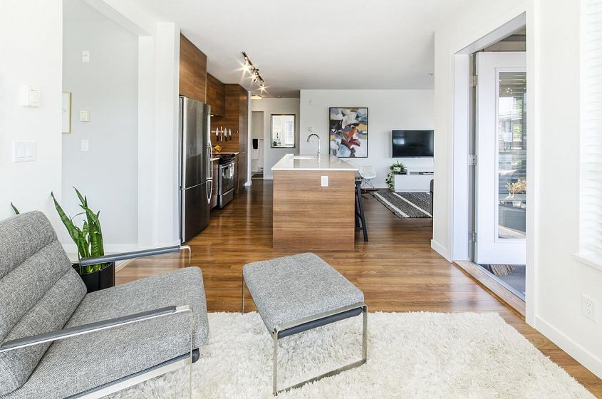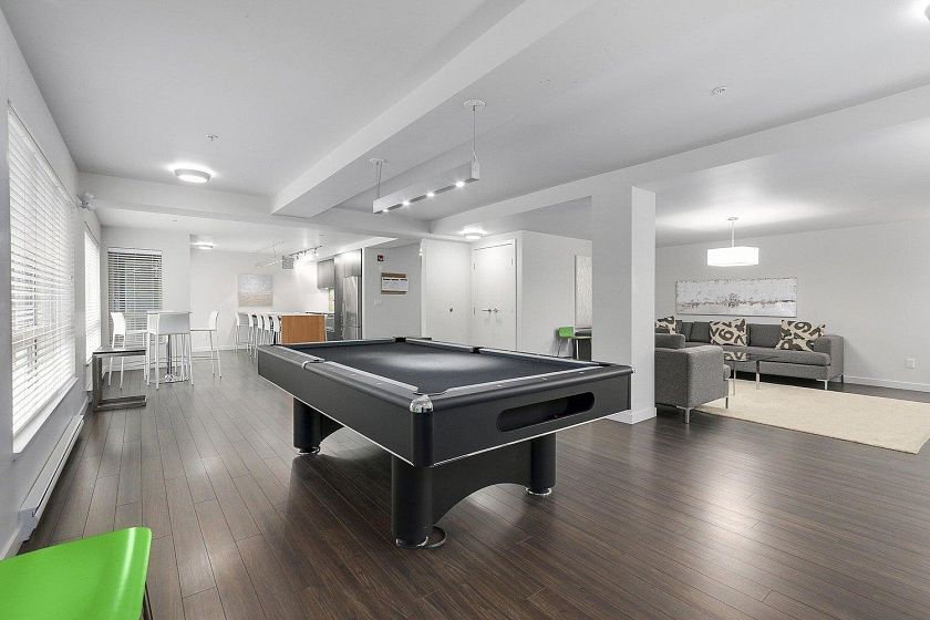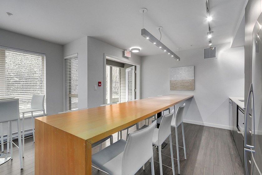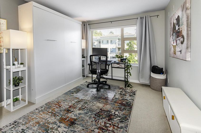 THE BEST CORNER UNIT offering S/E exposure, w oversized windows for loads of natural light. This well thought-out flr plan has a unique open concept living space w 2 good sized bedrooms that are well separated. Gourmet kitch w quartz countertops, lg island w seating for 4, SS appliances & pantry. Spa primary ensuite w deep soaker tub, sep glass shower & lots of counter space. Second bedroom has bath w shower & murphy bed. A spacious, private balcony for BBQs or green thumbs. Freshly painted w attractive panelling in kitchen creates a great canvas. In suite laundry. Pets welcome w lovely trails very close by. Well equipped gym, party rm & bike room in building. Shopping, trails, restaurants & transit all a short walk away. 1 parking, 1 locker & bike storage.