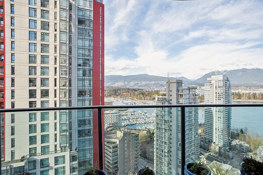 Discover elevated living at its best, welcome to The Melville! Enjoy breathtaking corner-unit views of Coal Harbour, North Shore Mountains, Marina and DT Vancouver. Recently professionally painted, this stunning 2 bed 2 bath home features the desirable NW corner floor plan w/ 9' ceilings, den and solarium. Enjoy sunsets from your beautiful outdoor patio.This impeccably designed home boasts hardwood floors, fireplace, premium full-size stainless steel appliances, granite & marble countertops w/ ample storage space. Includes 1 parking & 1 locker. Conveniently located to major amenities, transit, grocery stores, Stanley Park Seawall and Robson Street. Enjoy 24hr concierge & exclusive rooftop access to fitness center, hot tub, sauna, garden, bbq area &outdoor swimming pool. OH Sun 1-230pm