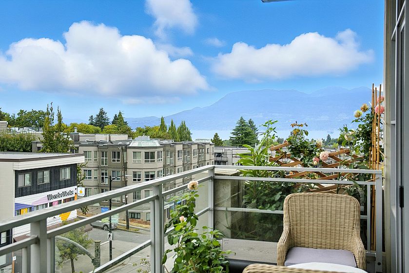 Bright and spacious 2-bedroom (with View), 2-bathroom home in The Duke on Dunbar, a well-built concrete Cressey development with air conditioning and a stunning rooftop garden. This ocean view, penhouse unit Features an open-concept kitchen, living, and dining area with generous storage. Equipped with a gas stove, gas fireplace, and built-in wine cooler. Large balcony for outdoor enjoyment. Loads updates with newer paint, newer carpet, wine cooler, and washer/dryer. Includes 2 parking stalls and a storage locker. Beautifully maintained. Prime location close to shops, restaurants, walking distance to the top-rated Lord Byng Secondary school. Don't miss!