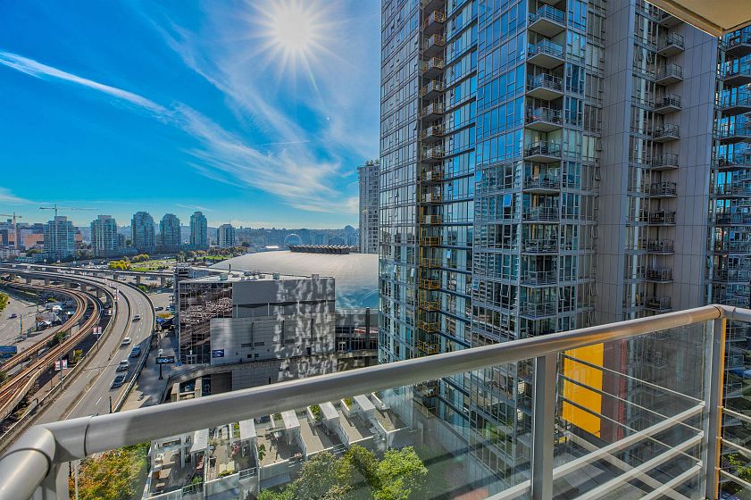 Experience bright, contemporary living in this stunning CORNER suite at Concord Pacific’s Spectrum! Soak in breathtaking 180° views of the North Shore Mountains, False Creek, and the city skyline from every window. This open-concept 2-bedroom + den + flex home offers a modern kitchen with stainless steel appliances, granite countertops, and sleek flooring throughout. Freshly painted and move-in ready, this well-kept home includes 1 parking stall and access to premium amenities, pool, hot tub, gym, lounge, and 24-hour concierge. Perfectly located just steps to SkyTrain, Costco, Rogers Arena, and the seawall, urban living at its finest!