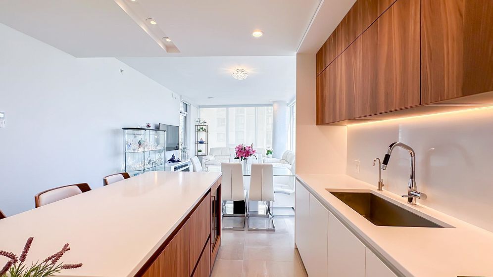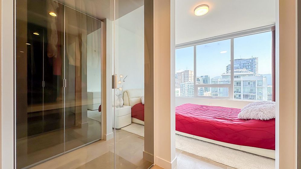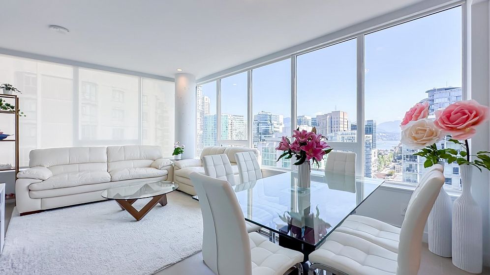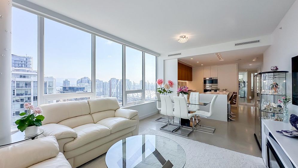 Welcome to The Smithe by Boffo Developments, the latest luxury development in Yaletown. This exceptionally well designed 2 bedroom, 2 bathroom corner unit offers expansive North shore mountain, city, and harbour views from the ideally situated North, East, and Western exposures of the home with an abundance of natural light. Features in the home include Italian marble tile flooring throughout, high end integrated appliances and wine fridge by Wolf & Sub-Zero, Italian kitchen cabinetry by Binova, Savant smart home system, heated bathroom floors, and automatic Lutron blinds system in every room. Luxurious amenities include a 24hr concierge service, indoor/ outdoor lounge, fitness center, and dedicate bike elevator with workshop. Two side by side EV parking stalls and storage locker included.