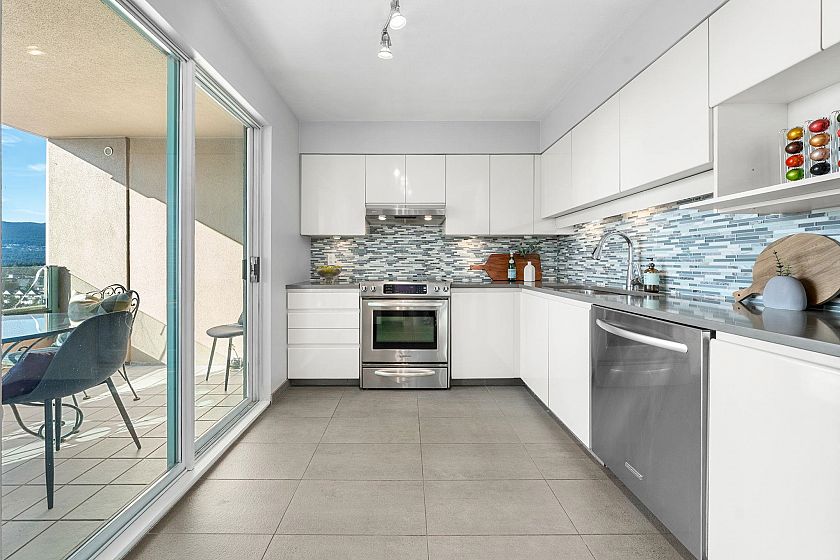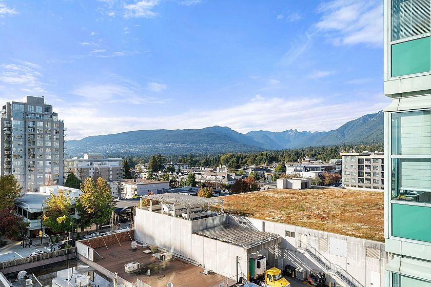 Prime South-West Corner unit. This bright & spacious 2-bedroom, 2-bath southwest-facing home offers nearly 1,000 sq ft of beautiful living space w/ views of the ocean, downtown skyline & Lions Gate Bridge. Located in The Sovereign, a rainscreened concrete building in the heart of Central Lonsdale. Enjoy an open-concept layout w/ generous living & dining areas and a large covered balcony perfect for watching the sunset. The kitchen is equipped w/ stainless steel appliances & plenty of storage. The primary bedroom is generous in size with a 3-piece ensuite. In-suite laundry, 1 secure parking stall & a storage locker. Just steps to parks, Whole Foods, the new Harry Jerome rec centre, restaurants & transit, this home offers incredible lifestyle and value. Open Wed Oct 8 10-12 & Mon Oct 13 2-4.