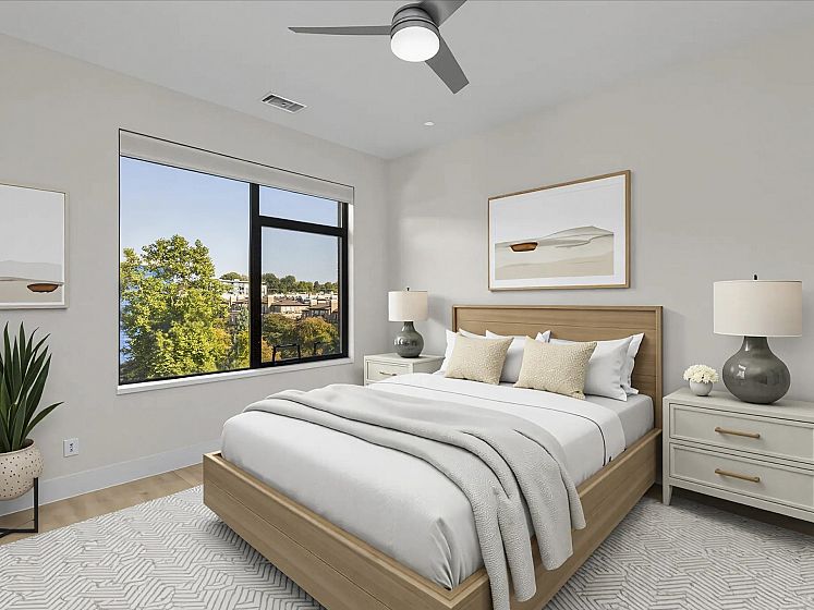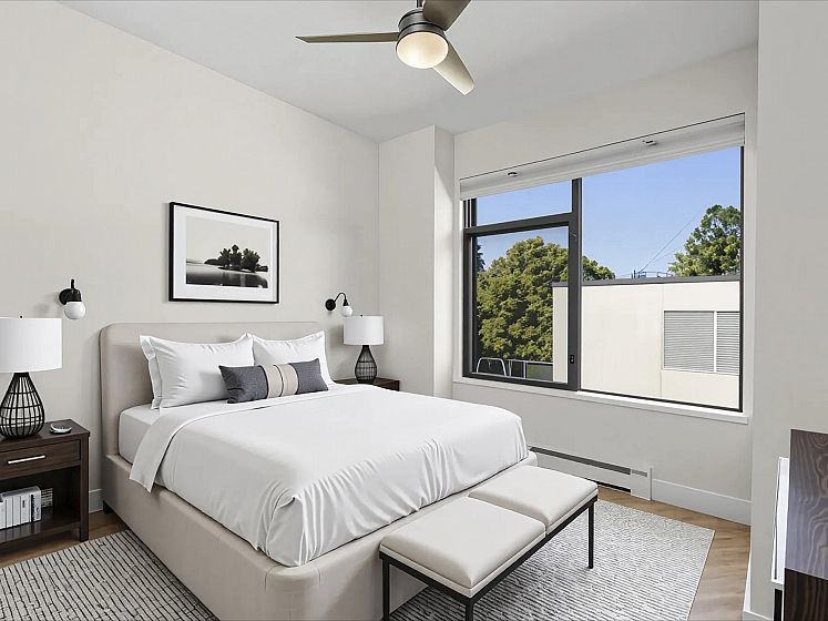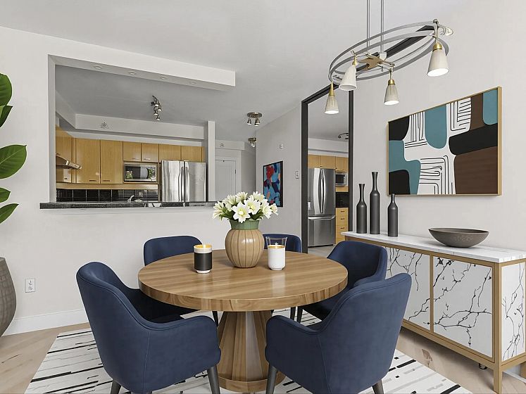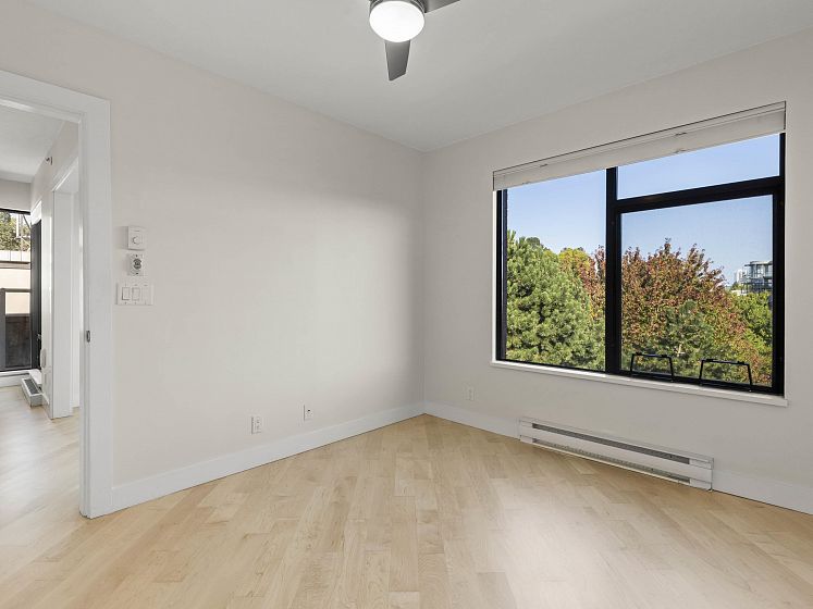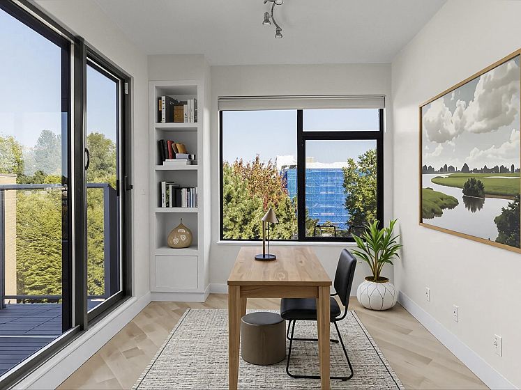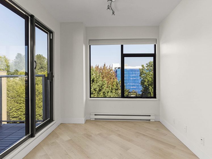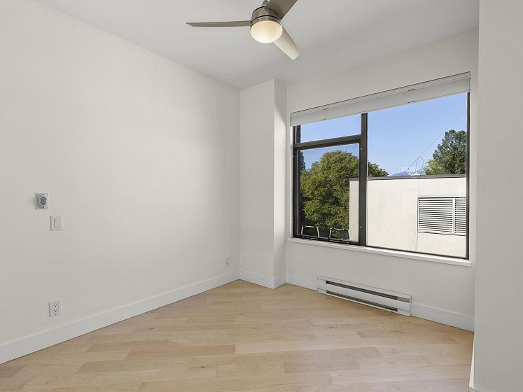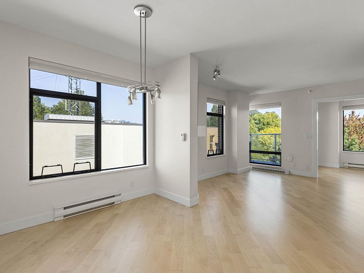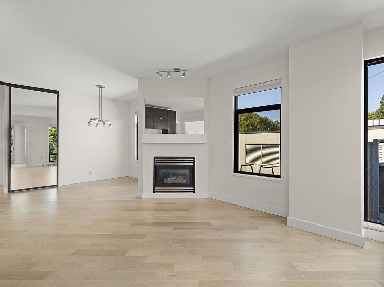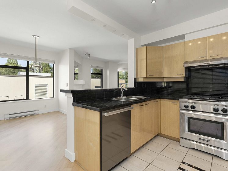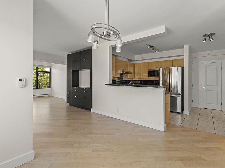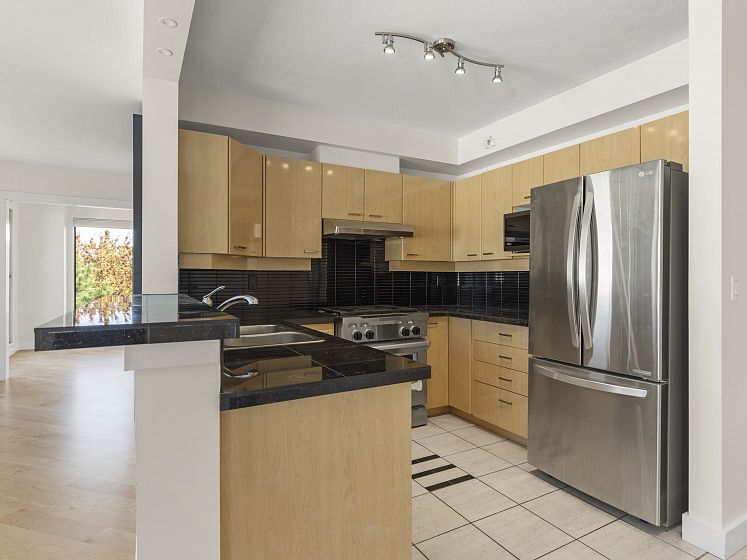 Unbeatable location in Arbutus Walk! This bright 2-bed/2-bath + den, 996 sq. ft. corner home at Solo is in excellent condition with stylish upgrades. Recently refinished maple floors, a dual-fuel stainless oven, Miele dishwasher, and LG refrigerator enhance the spacious open-plan kitchen and living areas. Large windows fill the home with natural light and showcase peaceful park views with mountain tops beyond. The primary suite features a walk-in closet and 3-pc ensuite; the second bedroom is generous in size. Enjoy excellent room separation, insuite storage, a large balcony, 2 parking stalls with EV charger, bike storage, gym, and amenity room. All just steps to parks, shops, schools, transit, and the Kits Farmer’s Market.