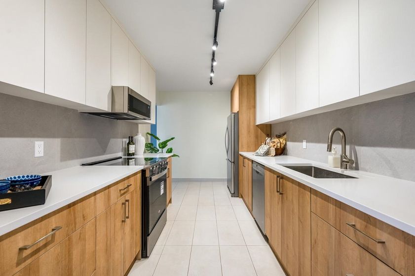 LIVE LIKE A PENTHOUSE owner in this updated 2BED 2BATH home offering over 1,300 SF of refined living in South Granville. Step through your private foyer into a freshly painted space with a brand-new kitchen and renovated bathrooms — a true turn-key property. With only 2 homes/floor and exposures to N, NE & S, this bright, airy residence is filled with natural light. Enjoy house-sized proportions rarely found in a condo, with a primary bedroom comparable in size to a studio home, and generous living and dining areas. Includes 2 secure parking stalls and a storage shed available. A Walk Score of 98/100, this location offers unmatched everyday convenience — with cafés/restaurants, shops, and transit all just steps away. Pets not allowed.