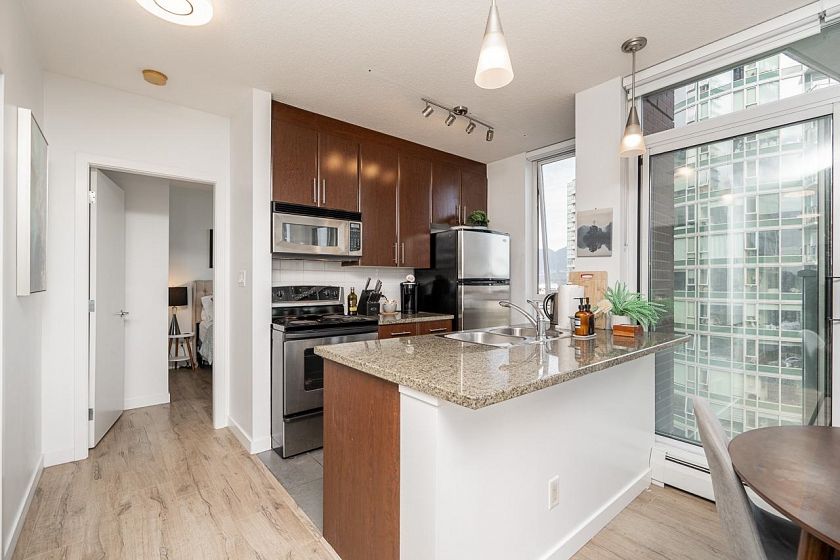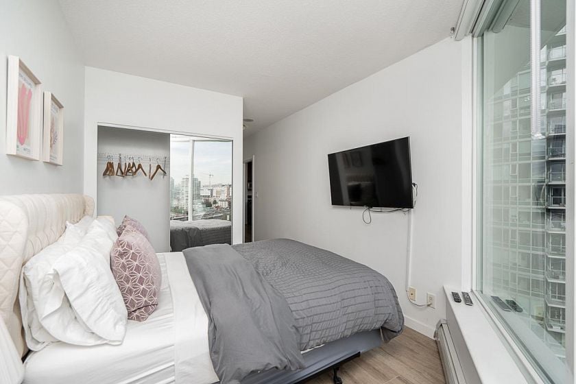 HOT PRICE *** Enjoy stunning 180-degree southeast views of the park, mountains, South False Creek, Science World, and the city from this Airbnb-friendly corner suite at Firenze Tower II. This 2-bedroom, 2-bathroom unit features updated laminate flooring, stainless steel appliances, quartz countertops, and an efficient 865 sq ft split-bedroom layout. Amenities include a 25-meter indoor pool, hot tub, sauna, gym, outdoor space, and a theatre. Located near Downtown and Gastown, it's walking distance to Costco, Rogers Arena, BC Place, restaurants, and the SkyTrain. Includes parking, with pets and short-term rentals allowed. Furniture sale optional. Showings by appointment.