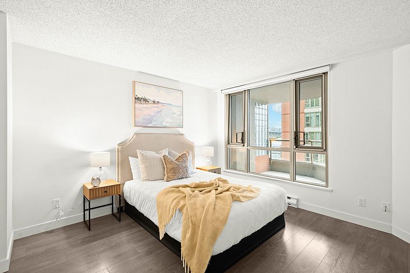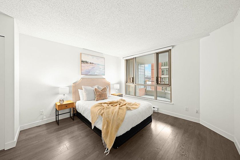 Experience waterfront luxury at this updated 2 bed 2 bath residence, perfectly positioned steps from Vancouver’s iconic Seawall. From sunrise to sunset, take in sweeping panoramic views of the ocean, marina, Granville Island, and the Burrard Street Bridge. Freshly painted & thoughtfully renovated, this unit features a modern feel with refined finishes and laminate flooring throughout. Updated kitchen with bar seating opens to bright dining and living room. Primary bedroom includes ensuite bathroom & walk through closet. Located in one of Vancouver’s most sought-after neighbourhoods, enjoy world-class dining, boutiques & waterfront strolls just outside your door. Prepaid lease until 2084. Includes same-floor storage locker & underground parking stall. OPEN HOUSE SAT/SUN OCT 18 & 19 2-4PM.