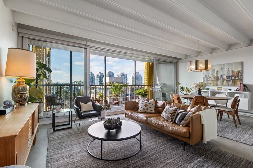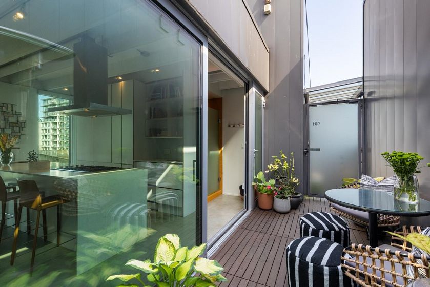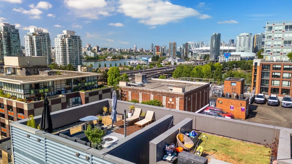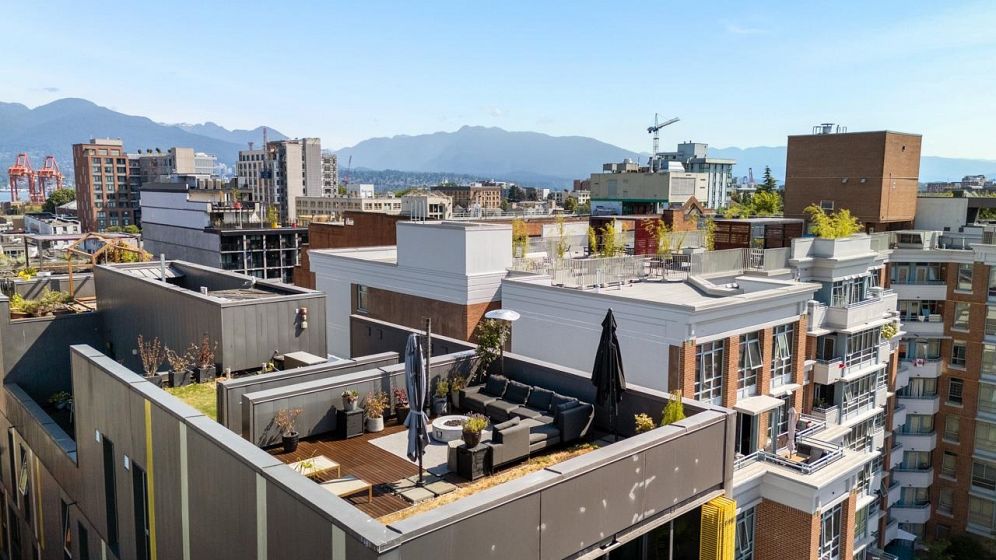 A rare architectural gem in the heart of Chinatown. This stunning 2-bed + den penthouse at The Flats blends minimalist design with urban sophistication. Featuring over 1,400 sq ft of living space across two levels, plus over 900 sq ft of outdoor living space including a private rooftop terrace with 360 degree views of the Vancouver skyline, False Creek, & North Shore mountains. Bright and modern with high ceilings, polished concrete floors, floor-to-ceiling windows, and sleek European-style finishes throughout. Smart, open-concept layout maximizes space and light…a boutique concrete building popular with design lovers. Bike storage, 1 parking and 1 storage. Rentals/pets allowed. A one-of-a-kind home for the design savvy urbanite in one of Vancouver’s most vibrant, evolving neighbourhoods.