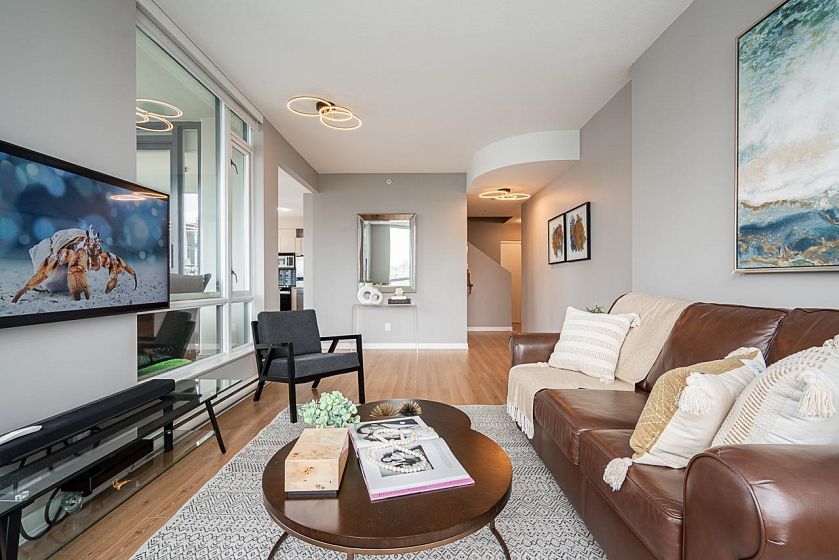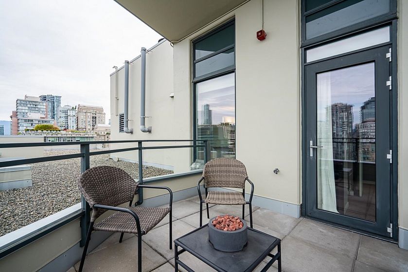 Exceptional Yaletown Penthouse with Expansive Outdoor Living. Experience the ultimate in urban living with this rare two-level penthouse featuring over 1,450 sqft of interior space and four private patios. This home offers the feel of a house, with both bedrooms upstairs, each with its own ensuite for added privacy and comfort. Enjoy sweeping southwest views over Emery Barnes Park, close to Granville Entertainment district, and effortless access to all your favorite Yaletown patios—perfect for summer evenings. Just a 5-minute stroll takes you to the seawall, ideal for morning coffee walks or sunset runs. Building amenities include a concierge, fitness centre, and secure parking with EV charging in your stall. Come see this extraordinary home in person!
