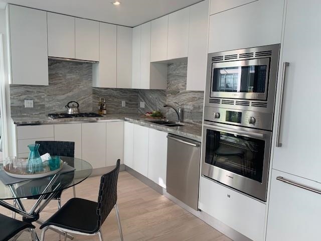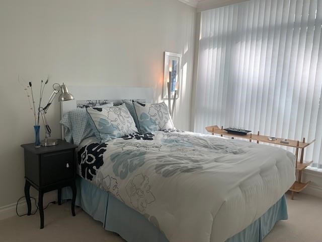 Imagine having a huge over 600 sqft Roof Deck with water & gas outlets for your garden, fire pit or BBQ, perfect for entertaining plus you have a balcony on the main floor! This unique 2 bed/2 bath has quality finishing including Scavolini kitchen cabinets, Bosch appliances, crown moulding, 9 foot ceilings, air conditioning, and engineered hardwood throughout the main living areas - cozy carpet in the bedrooms. Live a carefree life style in this waterfront walk to everything location. You are steps to the Seabus, Spirit Trail and many shops, services and casual and fine dining options. Cascade owners enjoy use of the fitness facilities at the Pinnacle Pier Hotel including a 5 lane indoor lap pool, gym, steam , sauna, sun terrace and whirlpool. This fine home is Brand New and Move in Ready!