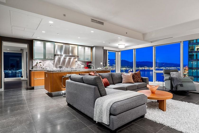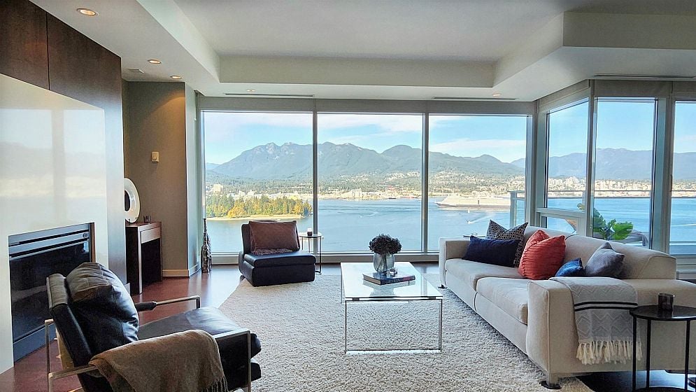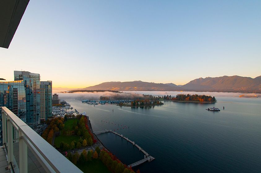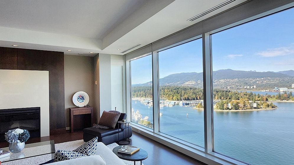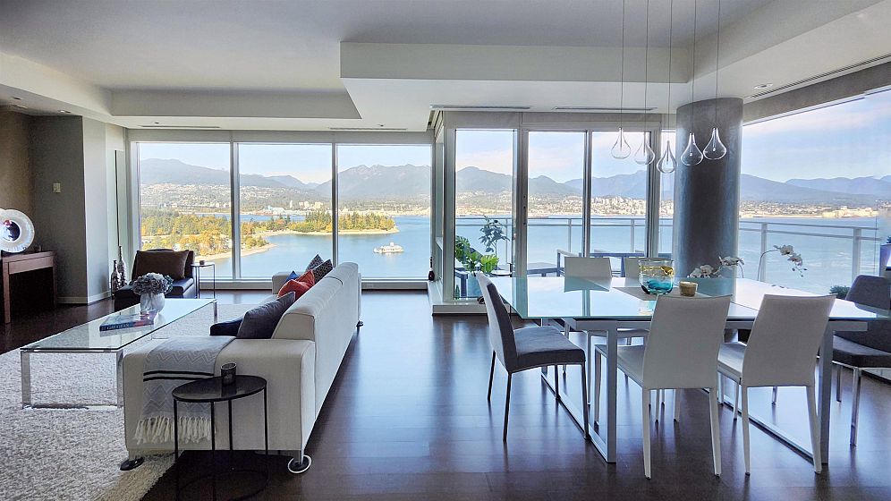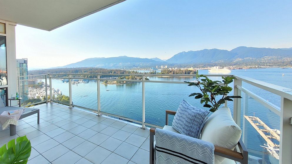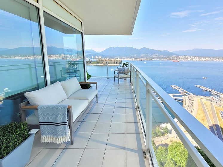 Exclusive sophisticated oceanfront living at award-winning 2 Harbor Green in Coal Harbor.With only 2 units on this floor,the spacious&bright home is at the perfect height;high enough to offer far reaching stunning 180°views, incl Stanley Park,Lions Gate Bridge&2nd Narrows Bridge;yet still has a very intimate feel with the water and greenery.Enjoy sunrises and sunsets from the large private terrace and tranquil water vistas from every main room.Interiors offer designer custom millwork and upgrades,and is in immaculate move-in-ready condition.Rare features:a private 2 car garage with two EV chargers, an extra large parking stall,and 2 concrete storage rooms(~260sq.ft., perfect for downsizers).World class amenities: hotel-style lobby,24hr concierge,indoor pool,gym,guest room,virtual golf etc.