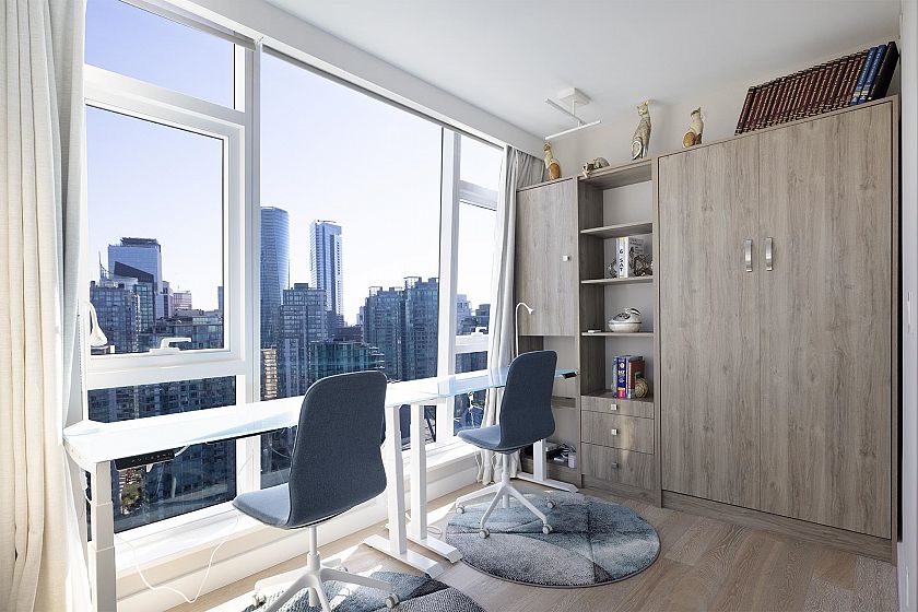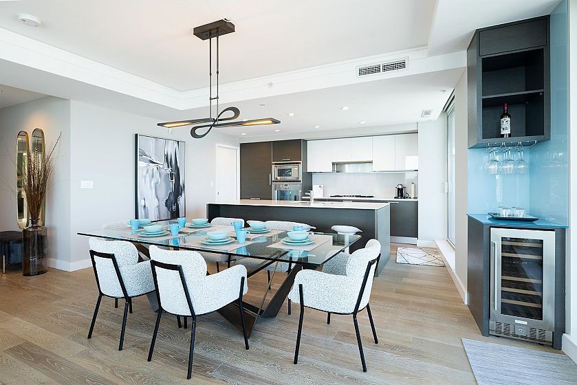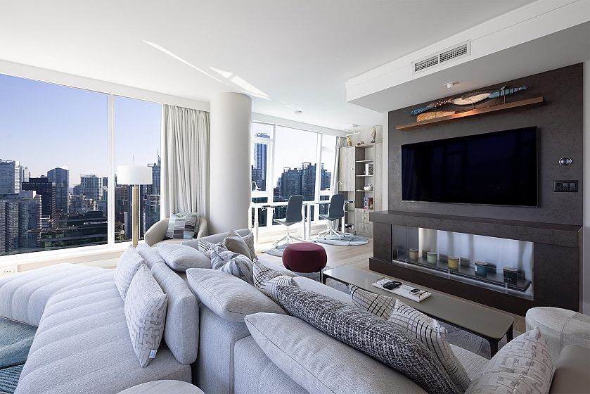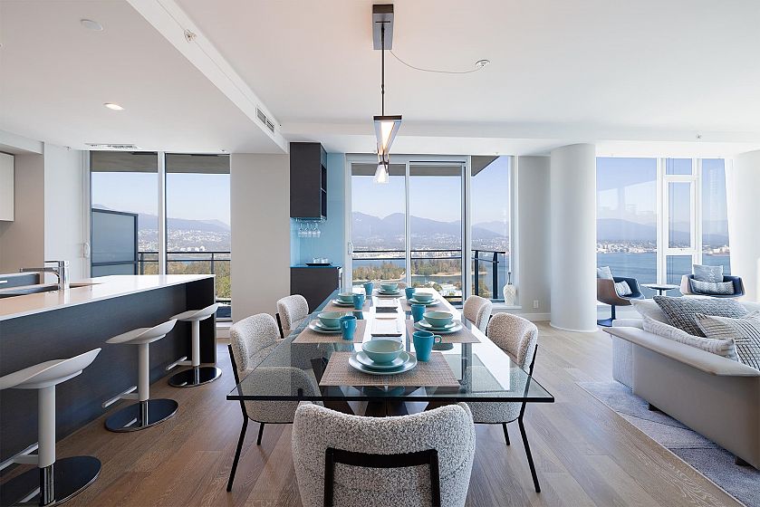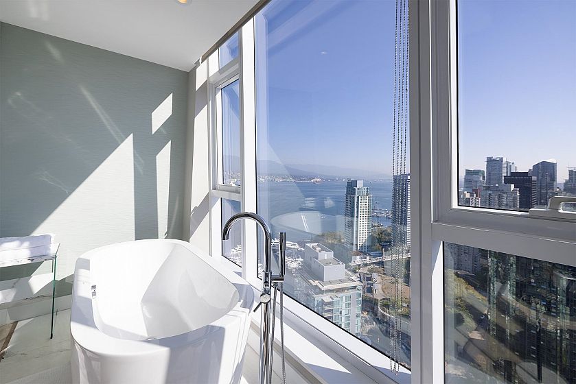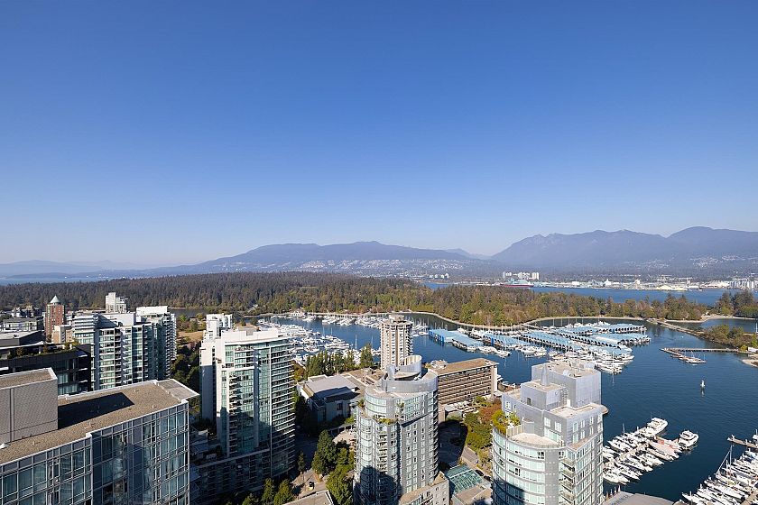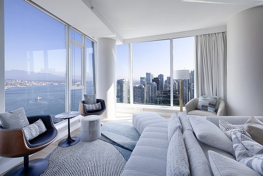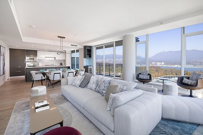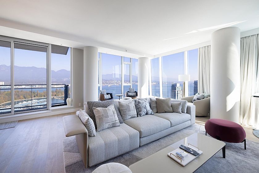 Totally renovated like brand new and fully furnished luxurious condo in prestigious Coal Harbor with over 270 degrees of unobstructed jaw-dropping views! This spacious 2 bedroom + open den, 2.5 bathroom condo is 1st time on the rental market and second to none! The floor to ceiling windows frame the view beautifully. From the Lions Gate Bridge to Stanley Park, the North Shore Mountains to UBC, English Bay and the cityscape, everywhere you look out the window, you will see an iconic site. The condo is fully furnished with high end imported European furniture featuring the theme of Ocean and Mountain wisely displayed by the designer. Open concept chef's kitchen with the best Gaggenau appliances, huge Sub-zero fridge with pantry and wine fridge! 2 zoned air conditioning. 2 parking stall.