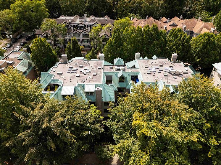 RARELY AVAILABLE! A 1284 SqFt PENTHOUSE with 2 PRIVATE PATIOS, in a FULLY RAINSCREENED building, just a stone’s throw from VGH! You can update a kitchen, but you can’t change a FLOORPLAN or LOCATION! This property, with unique ARCHITECTURAL FEATURES is a BLANK CANVAS for your DREAM HOME! The main living area offers multiple SKYLIGHTS, can easily accommodate FULL SIZED furniture, offers a GAS FIREPLACE, a dining room large enough for a 6 PERSON TABLE, all surrounded by newer TRIPLE PANE WINDOWS for maximum NOISE REDUCTION. The primary is large enough for a KING SIZED bed, offers 2 closets, an ensuite, and access to the 2nd patio. BRILLIANT LOCATION! Just steps to VGH, CITY SQUARE Mall, Broadway SKYTRAIN Station, CAMBIE VILLAGE & the FALSE CREEK Seawall. Pet OK, includes 2 PARKING & STORAGE.