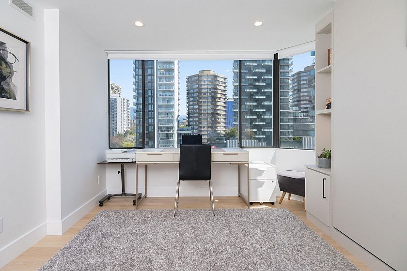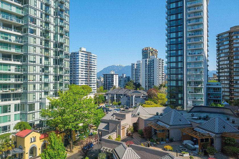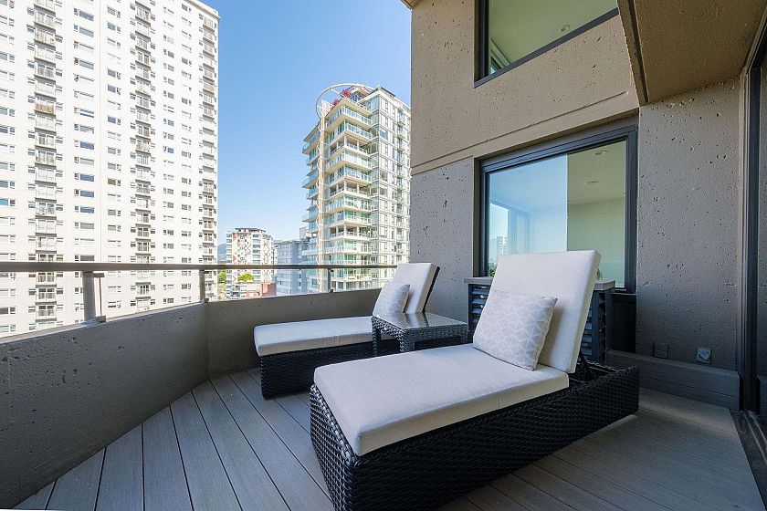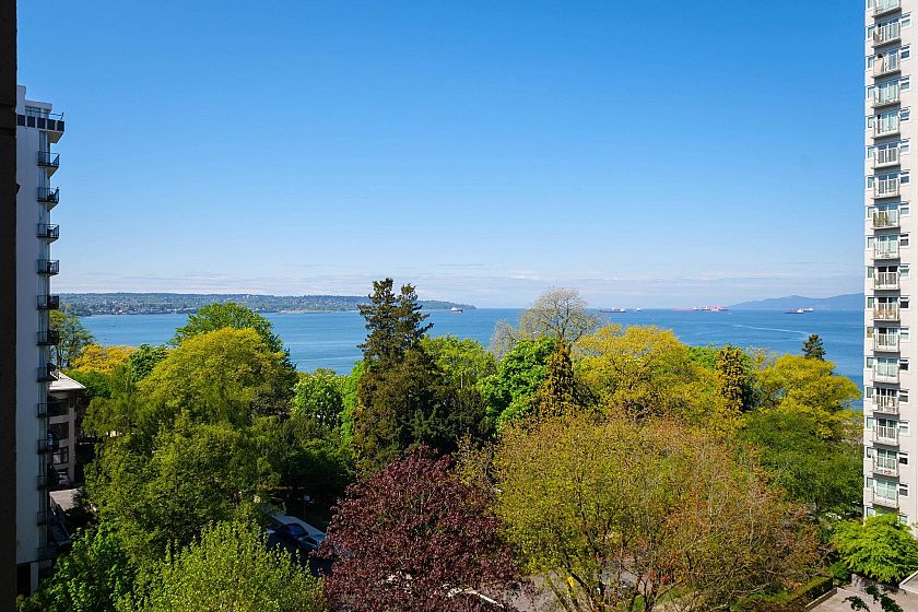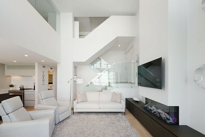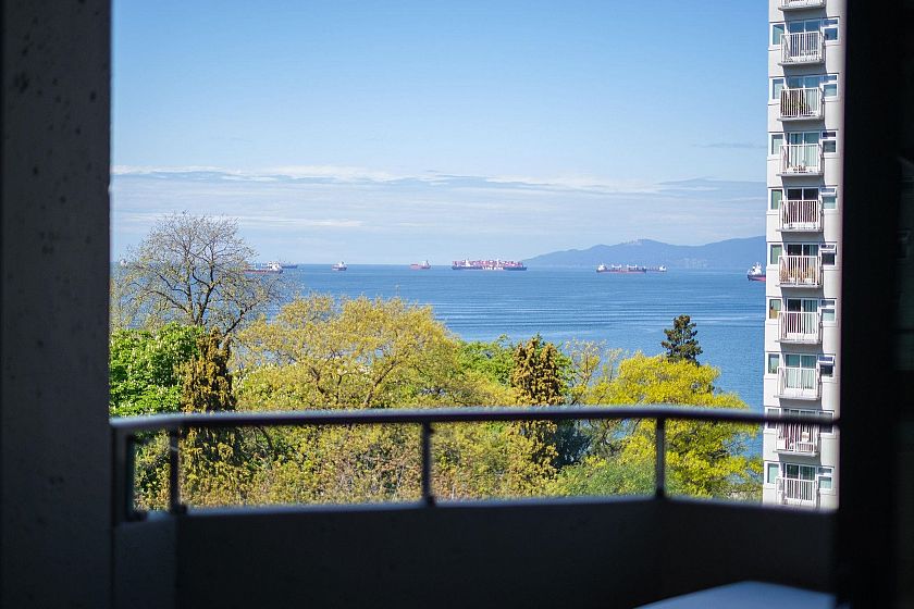 Welcome to Alexandra Park, a rare air conditioned West End offering with breathtaking English Bay views. This fully renovated 2 bed, 2 bath split-level home blends sophistication with comfort - featuring soaring 16ft ceilings, a sun-drenched ocean view terrace, and a sleek chef's kitchen with Caesarstone counters, premium appliances, wine fridge, and large island. Upstairs, a luxurious primary suite awaits with spa-like ensuite and huge walk-in closet. Includes 2 EV compatible parking stalls AND storage. Impeccably maintained in an unbeatable location - this is West End living at its finest. Don't miss this exceptional opportunity!