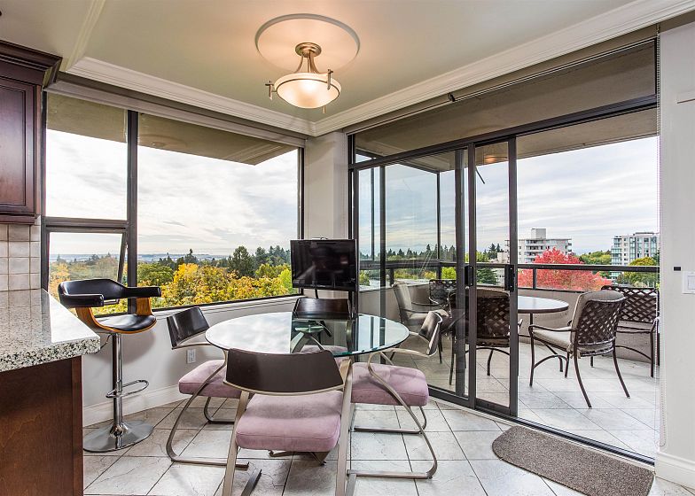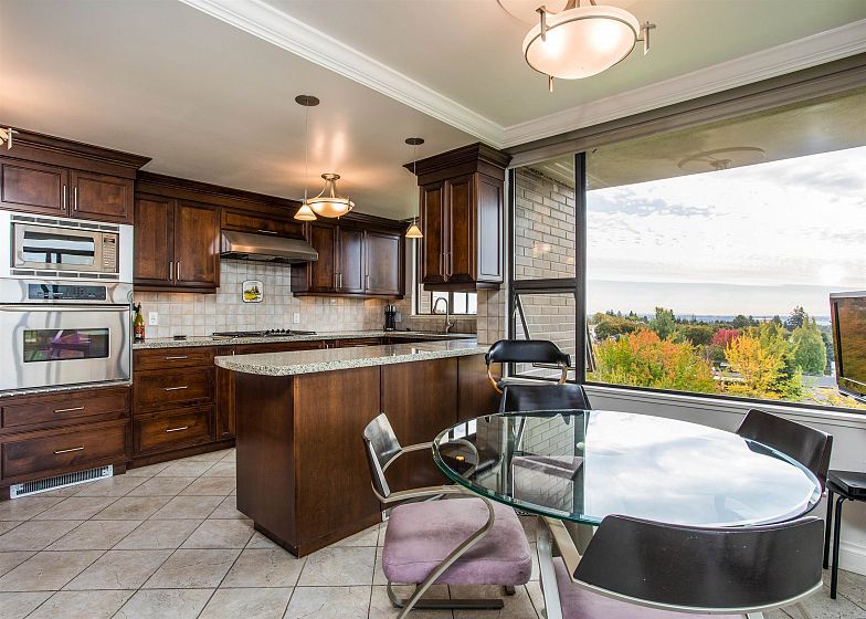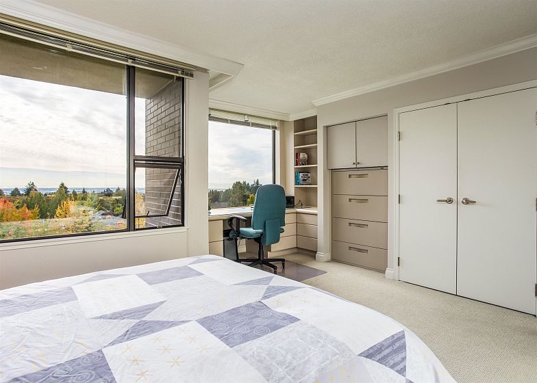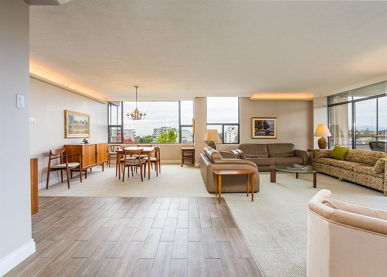 Suite #801 at “The Kerrisdale” a rare, full-floor residence with private elevator lobby. Two large bedrooms and two baths, walk in closet in the primary suite. Formal living and dining, plus family room. Expansive kitchen with Southwest corner eating area. Generous covered outdoor spaces. One-of-a-kind 360-degree views from The North Shore mountains to the Gulf Islands and beyond. Tastefully renovated and move-in ready. THREE parking stalls and a massive storage room with workshop. Well run boutique building with caretaker suite. In the heart of Kerrisdale and a short walk to the amenities you know and love. Ideal for downsizing from a house or as an elegant pied-a-terre. Abundant natural light from dawn to dusk. Real sized rooms for art and furniture. Quiet, private, secure, perfect!