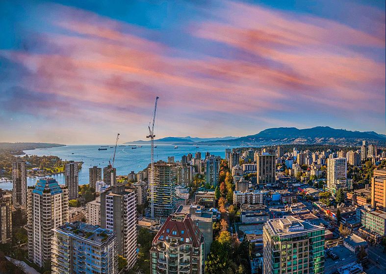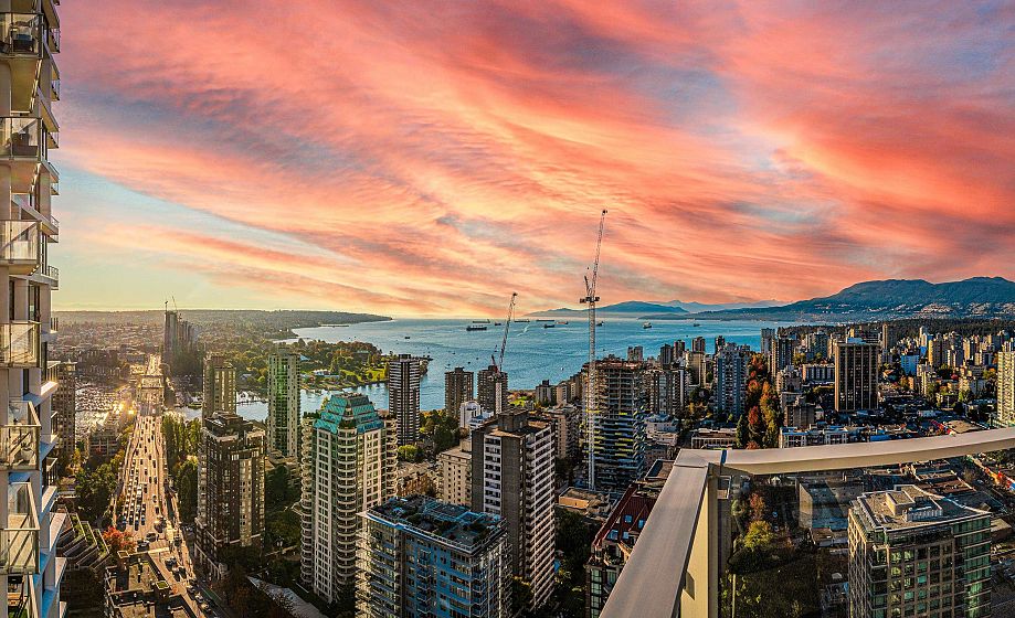 Luxurious 2-Bed + Flex NW corner suite with unobstructed panoramic views of English Bay, North Shore Mountains, Stanley Park & Howe Sound. Featuring engineered hardwood floors, A/C, smart home system & built-in safe. The Italian Miton kitchen offers a waterfall Caesarstone island & premium Gaggenau appliances. Bedrooms boast Kico closets with smoked glass & sensor lighting, while the marble-clad ensuite includes a soaker tub, double sinks & walk-in shower. Powder room highlights an iconic Antoniolupi cylinder sink. Comes with 5-star amenities: concierge & CLUB ONE with pool, gym, spa, yoga, hot tub, wine room & entertainment lounges.