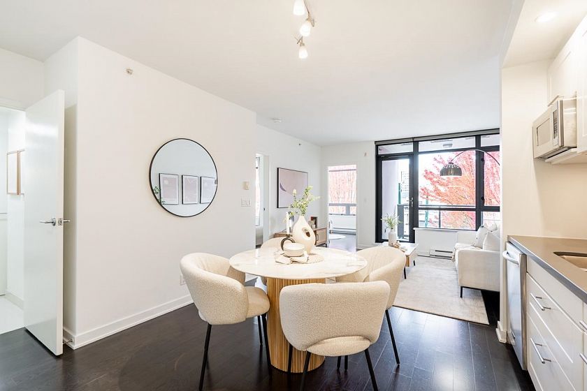 Tapestry by Concert Properties is a boutique concrete building in the popular Fairview neighborhood. Welcome to this open and airy home featuring fresh paint, an updated modern kitchen and efficient floor-plan with absolutely no wasted space. The primary bedroom features a luxurious sized walk-in-closet while the bright den/2nd bedroom gives you flexibility for working from home, guest room or nursery. There is a fully covered patio for year round bbqs. The area features an abundance of amenities with multiple transit options including the Canada Line and Broadway extension within a short walk, VGH, City Square shopping centre and a plethora of restaurants & shops along Broadway and Cambie. The building features EV charging stalls, bike rooms and a massive amenity room.