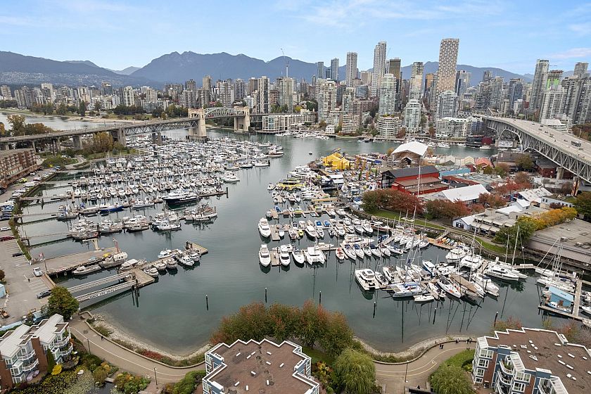 Best priced updated 2 bedroom, 2 bath home in Vancouver with an expansive primary suite and ensuite, drenched in natural light from east, west and south exposures. The open concept living, dining and kitchen flow to a sunny deck, perfect for morning coffee or an evening glass of wine. New additions: freshly painted with new appliances, window coverings, and laundry. With such generous square footage, there is room for two work from home opportunities. Steps to Granville Island, the Seawall, Prado Cafe, Les Amis du Fromage, and the design district - a walkable, European-style lifestyle by the water. Pre-paid lease with the City of Vancouver until 2046. Option to extend 20 years to 2066. Open House Sunday November 9th 2:00-4:00pm