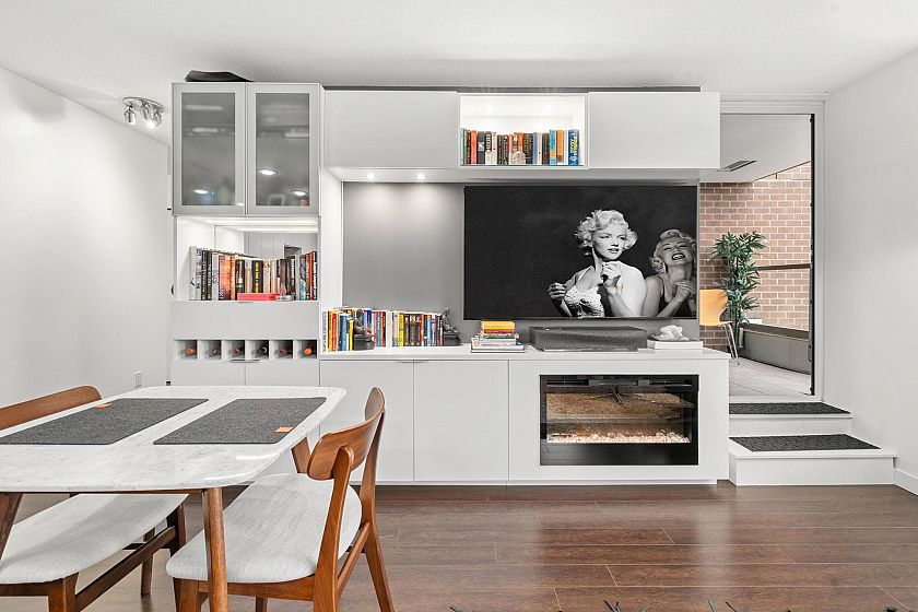 Welcome to Maynards Block! This immaculate SW-facing corner home perfectly blends modern comfort, security, and convenience in the heart of False Creek. Just steps to the Canada Line–Olympic Station (<20 min to YVR) and a quick stroll to shops, seawall, and restaurants. Enjoy a well-run building with concierge, fully equipped gym, meeting room, and rooftop garden plots with pergola. The home offers stair access to 2nd Ave—ideal for direct skytrain access or cycling. Inside, every detail shines: upgraded Bosch washer/dryer & dishwasher, Philips Hue lighting, Lutron automated shades, 3 smart home thermostats, two 65” 4k TVs, custom California Closets with builtin fireplace, 1 storage + 1 parking space. AC-ready, pet-friendly, and impeccably maintained. Listing only on market until Nov 20th