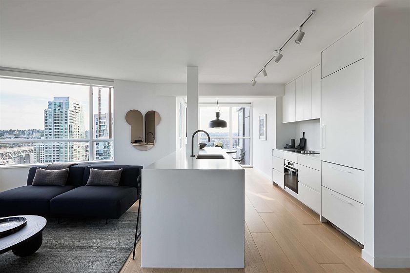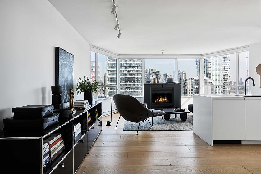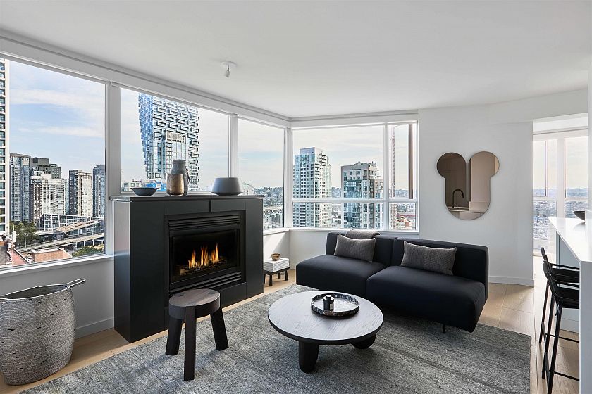 Chic city home @ Seastar by Bosa Properties, entirely reimagined by Provide Home & Robert Bailey Interiors. This residence boasts 926 sf of open plan interior and offers captivating False Creek views w/ E & S exposure. A focal gas fireplace is featured & the kitchen is furnished with custom cabinetry, a Kallista faucet, cearstone counters/backsplash and integrated Bosch & Liebherr appliances. The bathroom is fitted w/ Duravit fixtures, custom tile work & Nuheat. Stunning white oak plank hardwood throughout and black hardware accents reflect the home’s signature style. Seastar is a well-respected, meticulously managed address, and the amenities include a caretaker, guest suite, fitness center, lounge/garden area & ample visitor parking. This sophisticated designer's dream residence awaits.