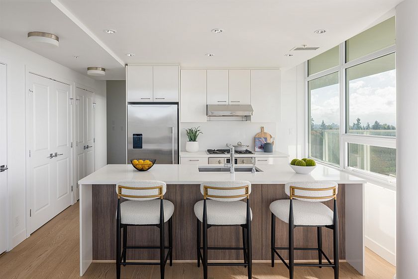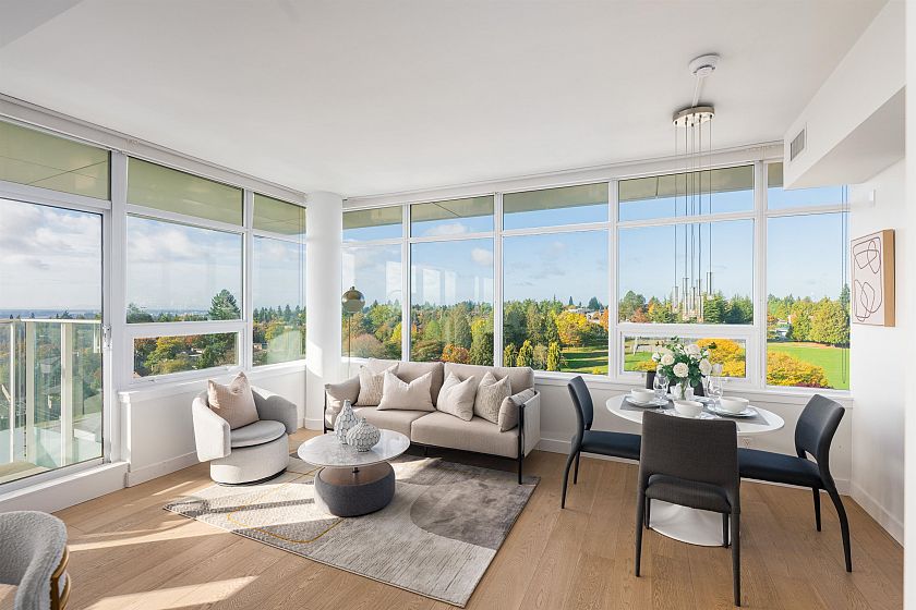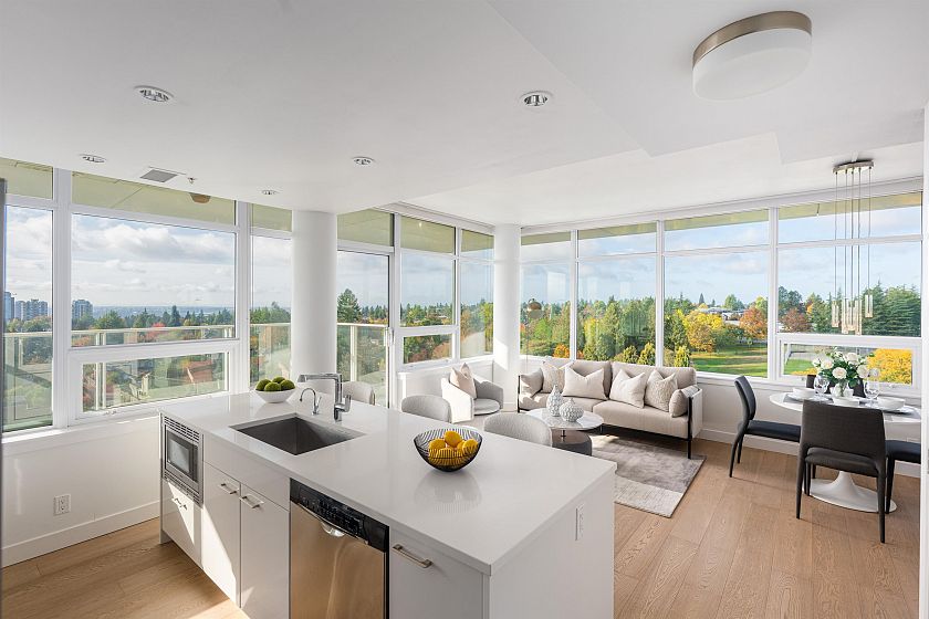 newly renovated 2 bed 2 bath corner Penthouse in Oakridge core place with amazing view. This south-west facing Penthouse has a 180 degree breathtaking view, mountain, water, foliage, city... The best location in Oakridge, just steps to Oakridge mall, 49 street sky train station, cross street to the famous Jamieson Elementary, walk distance to Langara college, YMCA and scenic parks, Adjoining to Alliance Francaise center. LEED GOLD STANDARD building, including A/C, Polished quartz counter top and backsplash, Sleek stainless steel appliance, engineered hardwood floors. countertops.