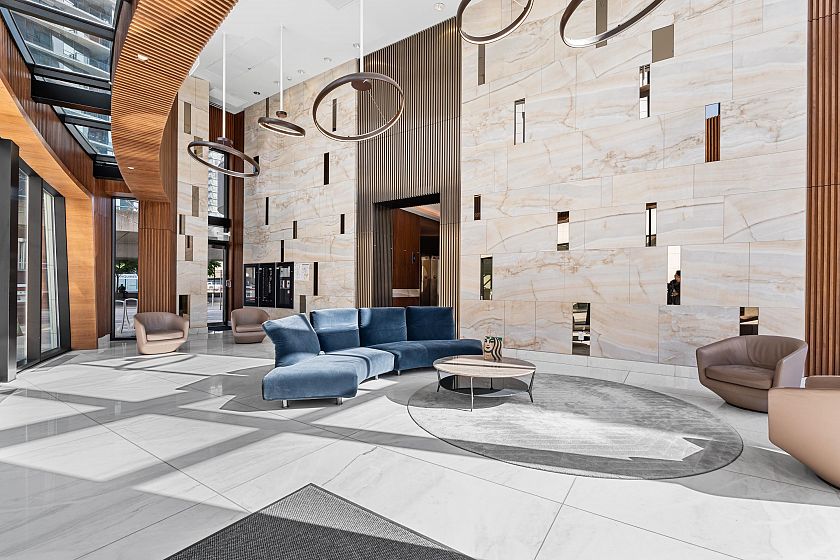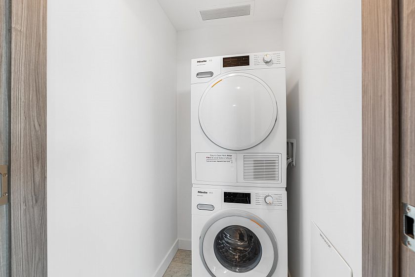 Beautifully designed 2-bed + Flex/Den, 2-bath Corner View Unit at 'The Arc'. Perched on the front of the 15th floor; this home offers sweeping views of False Creek and the city skyline, with an expansive 400+ SF covered Balcony ideal for relaxing or entertaining. Efficiently layed-out, featuring 8'4" ceilings, foor-to-ceiling windows, fully Air Conditioned, roller blinds, and laminate flooring throughout .The gourmet kitchen is equipped with Miele appliances, and the bedrooms are well-separated for optimal privacy. The primary suite includes an ensuite and a generous closet. Residents enjoy access to the Sky Club with its iconic 20th floor Glass-Bottom Pool & the Amenities at One Pacific. Steps to the Seawall. 3 parking Stalls, no locker.