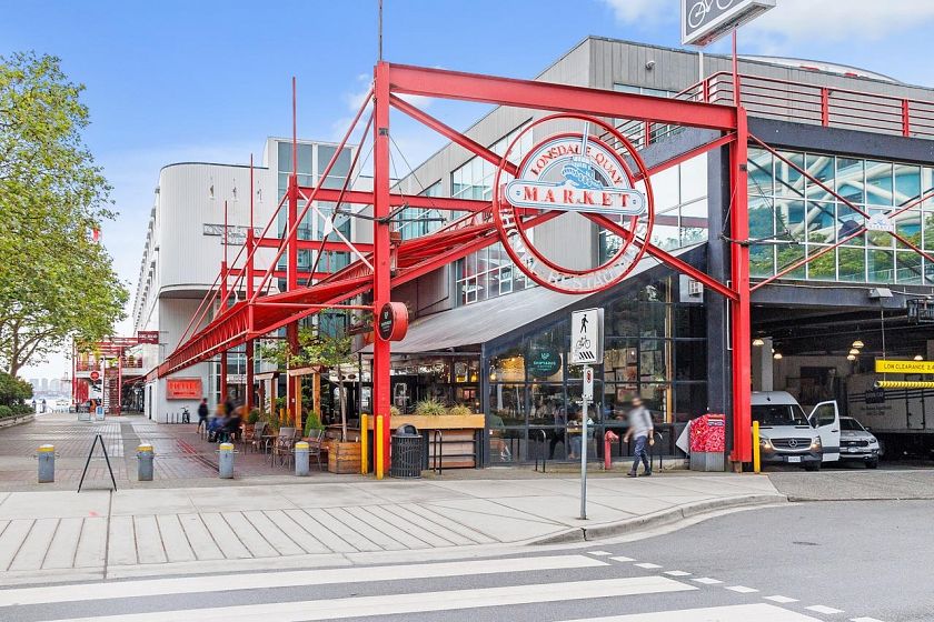 Welcome to The Landing at the Pier, a boutique concrete residence in the heart of Lower Lonsdale. This expansive 1,378 sq.ft. 2 bedroom, 3 bathroom city home offers rare flexibility with zoning that allows for both residential and live/work commercial use. Impressively large room sizes, including 2 oversized bedrooms (both w/ ensuite bathrooms) & flexible family room/office at the entry. The south-facing exposure w/ peek-a-boo harbour views brings in natural light, while modern comforts like AIR CONDITIONING & a gas range elevate the everyday. Offering a rooftop patio & 1 secured parking. Live the Lolo lifestyle, steps to the Shipyards, restaurants, Quay market, Seabus & transit. Assessed $1,263M! Easy to show & open Saturday, November 29th 12:30-2pm.