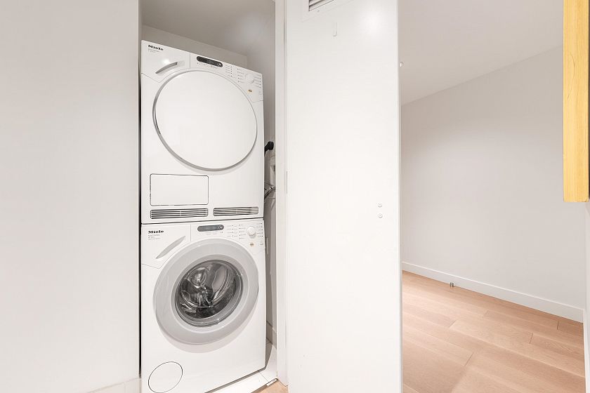 Northwest Air-conditioned corner unit with 2 beds, 2 baths + flex room, featuring a huge wrap-around balcony for city views! Functional layout with Modern kitchen with Miele appliances, Kohler fixtures in bathrooms, bamboo floors + carpets, and energy-saving AC. Building perks: heated pool, rooftop garden (dog-friendly!), gym, and 24/7 concierge. Perfect downtown location – steps away from shops, restaurants, and entertainment! One Parking and One locker included. Nov 8 (Sat) 2-4pm.