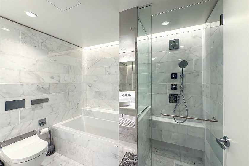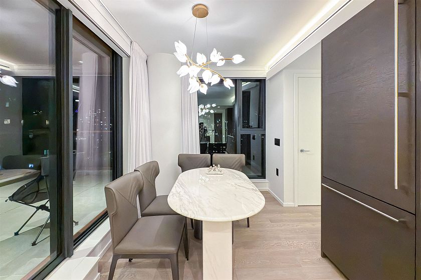 This fully air-conditioned, 2-bedroom + flex suite is designed for effortless luxury and modern convenience. Super natural light. Engineered hardwood flooring extends throughout, while the master bathroom features exquisite marble flooring with radiant heating for added comfort. The Italian-crafted kitchen is equipped with a premium Gaggenau appliance package, seamlessly blending elegance with top-tier performance. Beyond your home, indulge in first-class amenities, including pool, fitness/yoga studio, multimedia lounge, private dining room with kitchen. Perfectly situated just moments from shopping, fine dining, and the tranquil beauty of Stanley Park, offers an unparalleled lifestyle in the heart of the city. Showing by Appointment. Open house: cancelled