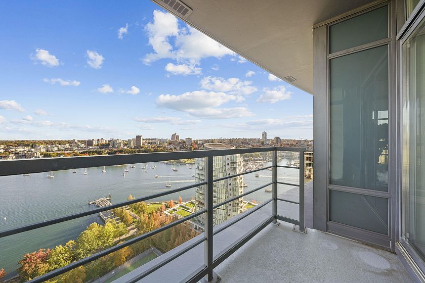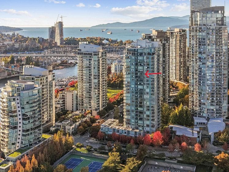 Welcome to the Waterford -Waterfront Living! Unbeatable location, in front of your doorstep are tennis courts, seawall & David Lam Park! Steps to Urban Fare grocer, restaurants, False Creek Aquabus to Granville Island. This 2 Beds, 2 Bath + Office features UNOBSTRUCTED Panoramic False Creek WATER VIEWS from every room. Excellent open layout leaves no wasted space. Walk-in closet in master-bed can easily fit a king bed. Ensuite with a separate shower & soaker tub. Office complete w/built-in shelves/cabinets, in-suite storage off the office area. Building offers 24/7 concierge, visitor parking, indoor lap pool, gym, movie theatre and GUEST SUITE. AIR CONDITIONING provides year-round comfort temperature & cozy GAS fireplace for the winter. 1 secure PARKING, 1 LOCKER.