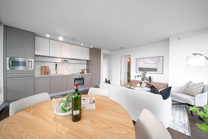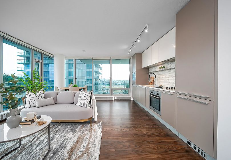 Welcome to your new home at MC2, an award-winning development by lntracorp! This 2-bedroom, 2-bathroom residence offers 760 sq ft of modern living space with a walk-out balcony and an energy-efficient passive heating and cooling system for year-round comfort. Designed by renowned architect James Cheng, the interiors feature Blomberg gourmet appliances, Caesarstone countertops, and built-in closets for maximum functionality. Enjoy premium amenities, including a 24-hour concierge, fully-equipped gym, meeting rooms, and a rooftop deck. Ideally located just steps from the Canada Line Skytrain, bus loop, T&T Supermarket, Cineplex, and the shops and restaurants of Marine Gateway. Includes 1 parking space and 1 storage locker.