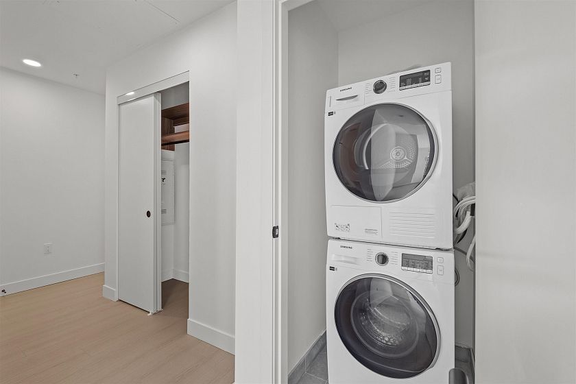 Be the first to live in this brand new corner suite, showcasing southern views! This 2 bed, 2 bath concrete built 2025 residence features floor-to-ceiling windows, an open kitchen with island, and a private balcony with downtown & water vistas. The primary bedroom includes a sleek ensuite, plus A/C ensures year-round comfort. Residents enjoy a massive communal rooftop deck with 360° views, party room, billiards & more. Walking distance to shops, cafés, restaurants & amenities of vibrant Lower Lonsdale. Parking & storage included. Pet & rental friendly.
