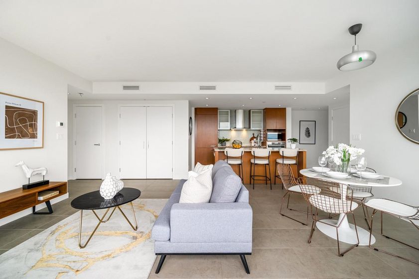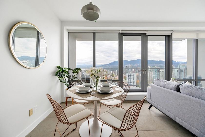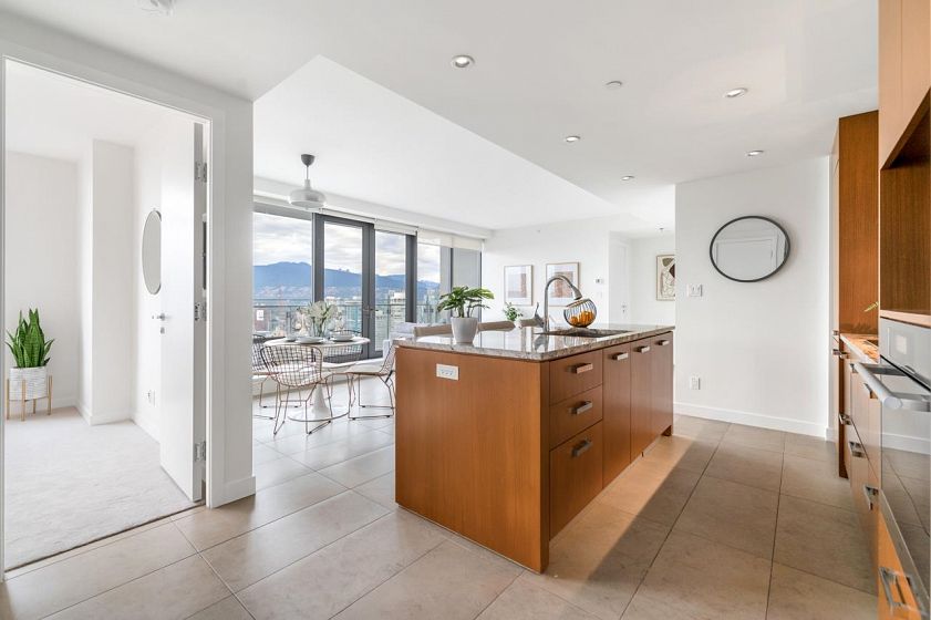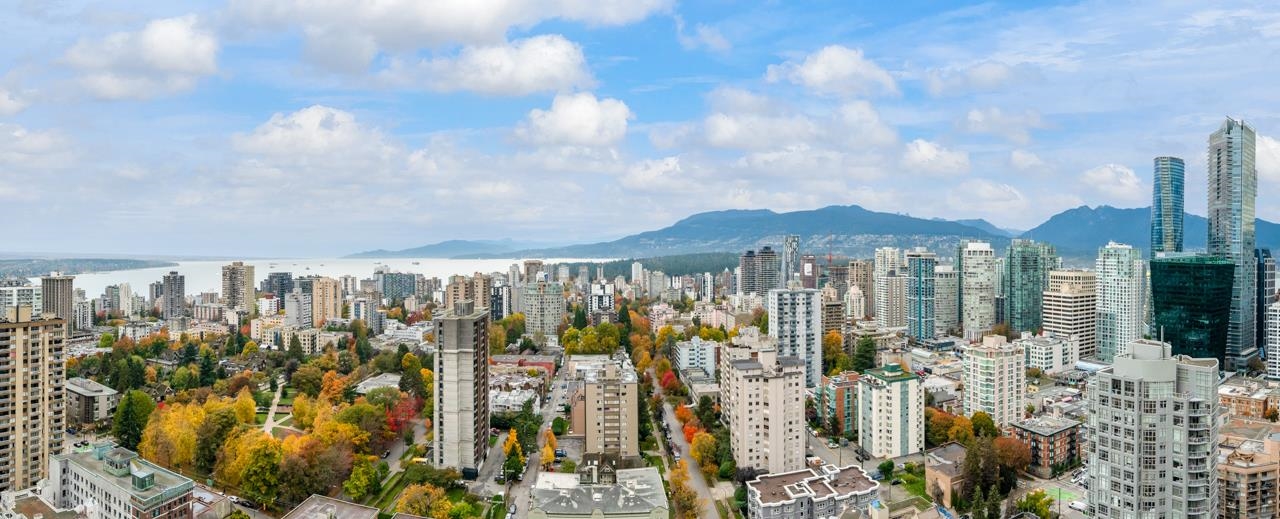 Beautiful home in the prestigious PATINA by Concert Properties, a highly regarded developer known for exceptional quality. This bright 2-bed, 2-bath + den residence offers panoramic views of the ocean, city, UBC, and nearby parks. The thoughtful layout provides excellent privacy with bedrooms located on opposite sides of the unit, while the open living, dining, and kitchen areas are designed to maximize the stunning views with no wasted space. The enclosed den offers flexibility for use as an office or extra storage. Prime downtown West End location with YMCA located downstairs, steps to luxury shopping, the waterfront, restaurants, and entertainment. Features include new paint and new carpet, low maintenance fees, Heating and Cooling system, and timeless modern design. Come view it today!