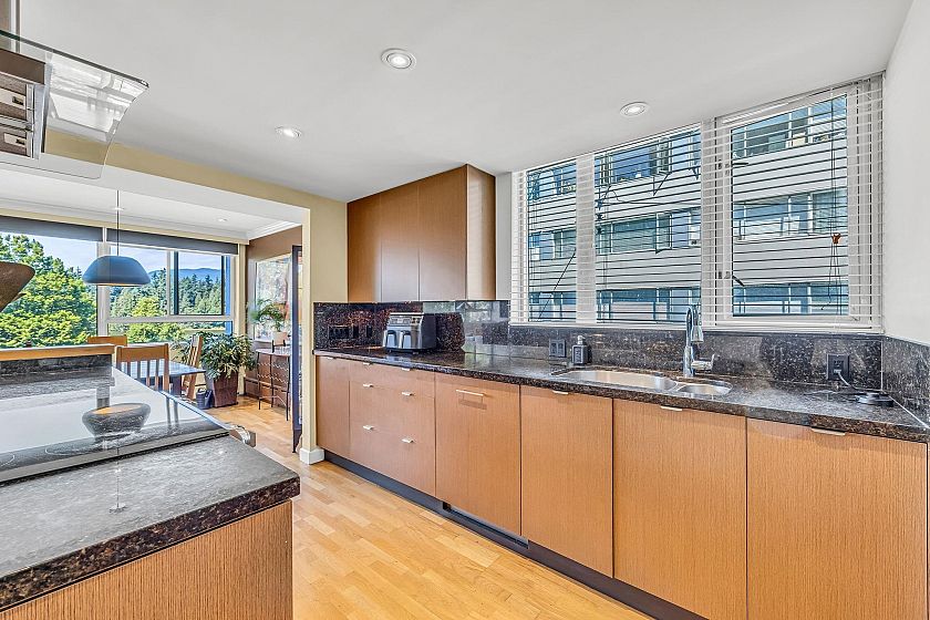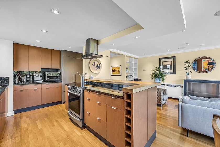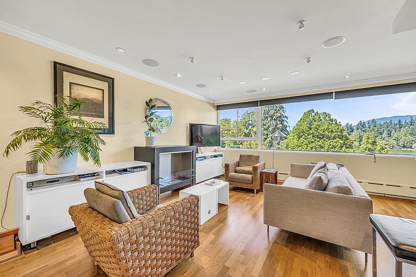 Gorgeous & tranquil water & mountain views. Perched on the edge of Stanley Park w/ Lost Lagoon, tennis courts, walking trails & bike paths right at your door. Windows on 4 sides of this bright SECOND floor CORNER suite. Fully renovated, this home feats an open plan kitchen/living/diving w scenic views through the wall-to-wall ‘picture window’ (Double Glazed). The XL primary bedroom doubles as an office/yoga studio, with an en-suite bathroom and walk-in shower. This down-sizers dream will fit all housesized furniture and includes in-site laundry (rare in Co-ops). Common rooftop deck with 270 views. Shops nearby. Plenty of visitor parking. 1 storage, 1 indoor secure parking. 19+. BONUS: NO Rentals or Pets. Taxes included in fees. Easy to show by app.
