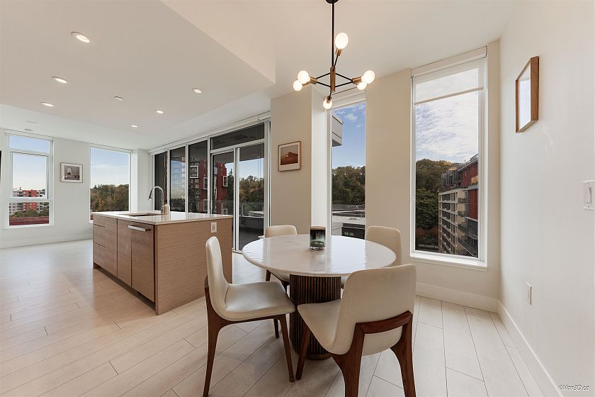 Welcome to MODE by Wesgroup! One of River District’s tallest concrete highrises, this 2bd + den, 2Bath, NW corner home offers nearly 900 sq.ft. of efficient living with a covered balcony for year-round BBQs. Enjoy a modern kitchen with gas stove, built-in appliances, quartz counters, and a large island—perfect for cooking and entertaining. Comfort features include in-floor heating in the ensuite and high-efficiency heating & cooling. Move-in ready with remaining new home warranty. Steps to parks, shops, and dining, plus access to great amenities—gym, hot tub, concierge, co-working and game rooms. You’ll love living here!
