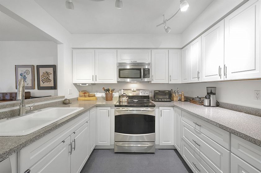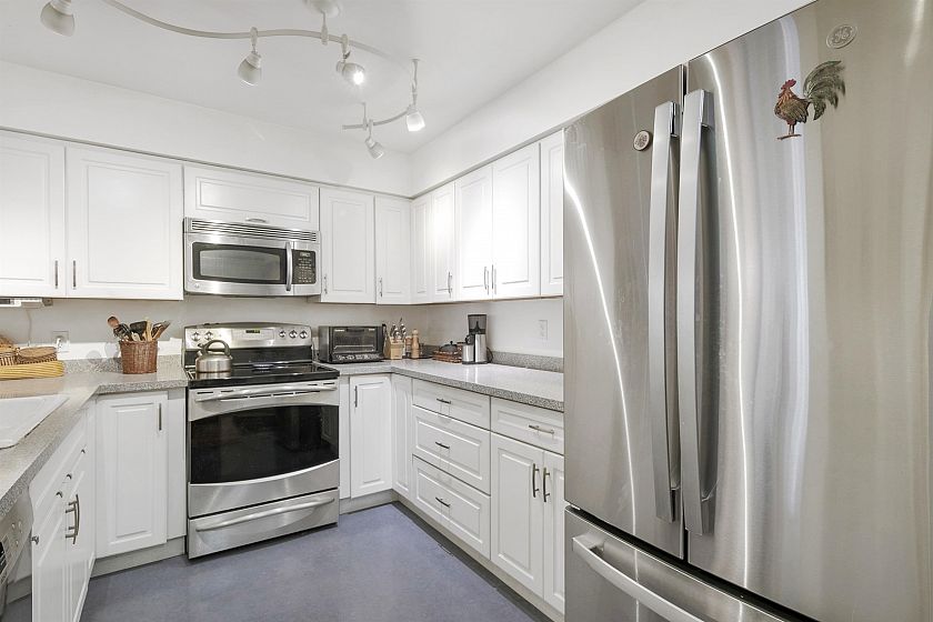 Excited to feature a 2 bed + 2 bath + storage with over 1,120sqft at Connaught Point, offering serene garden views from EVERY ROOM. This thoughtfully UPDATED home features a modern kitchen with stainless steel appliances, abundant storage, chic lighting, & a cozy gas fireplace. SPACIOUS living flows seamlessly to the expansive patio, perfect for lounging & quiet mornings. The MASSIVE primary retreat boasts walk-through closets and ensuite with an oversized tub. Includes your very own laundry room, outdoor storage area, & 1 parking. Rental/pet-friendly living. Steps to shops, Kits Beach, Connaught Park, Arbutus Greenway, TOP schools, and the FUTURE Arbutus Skytrain Station —embrace the ultimate Kitsilano lifestyle with city convenience and coastal charm.